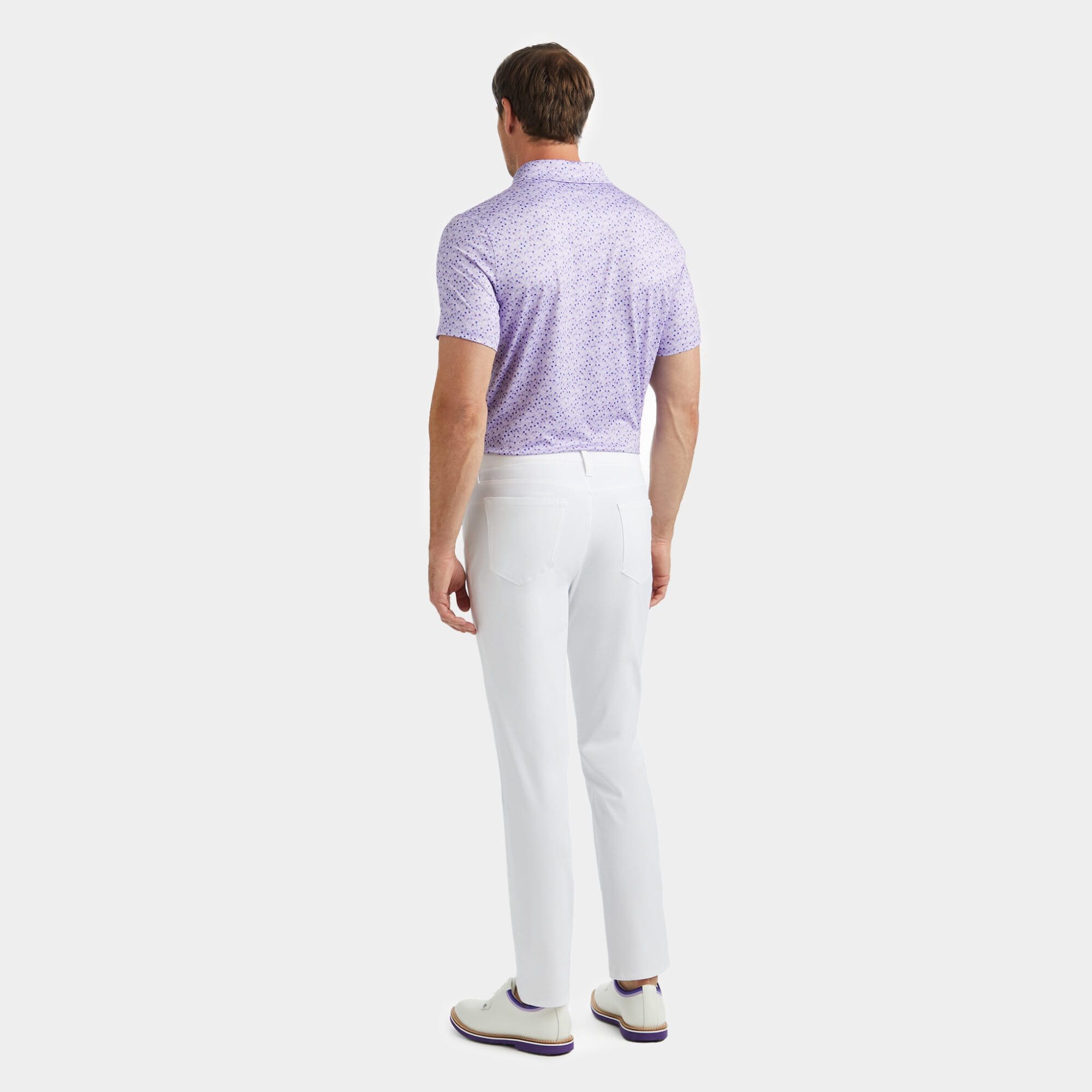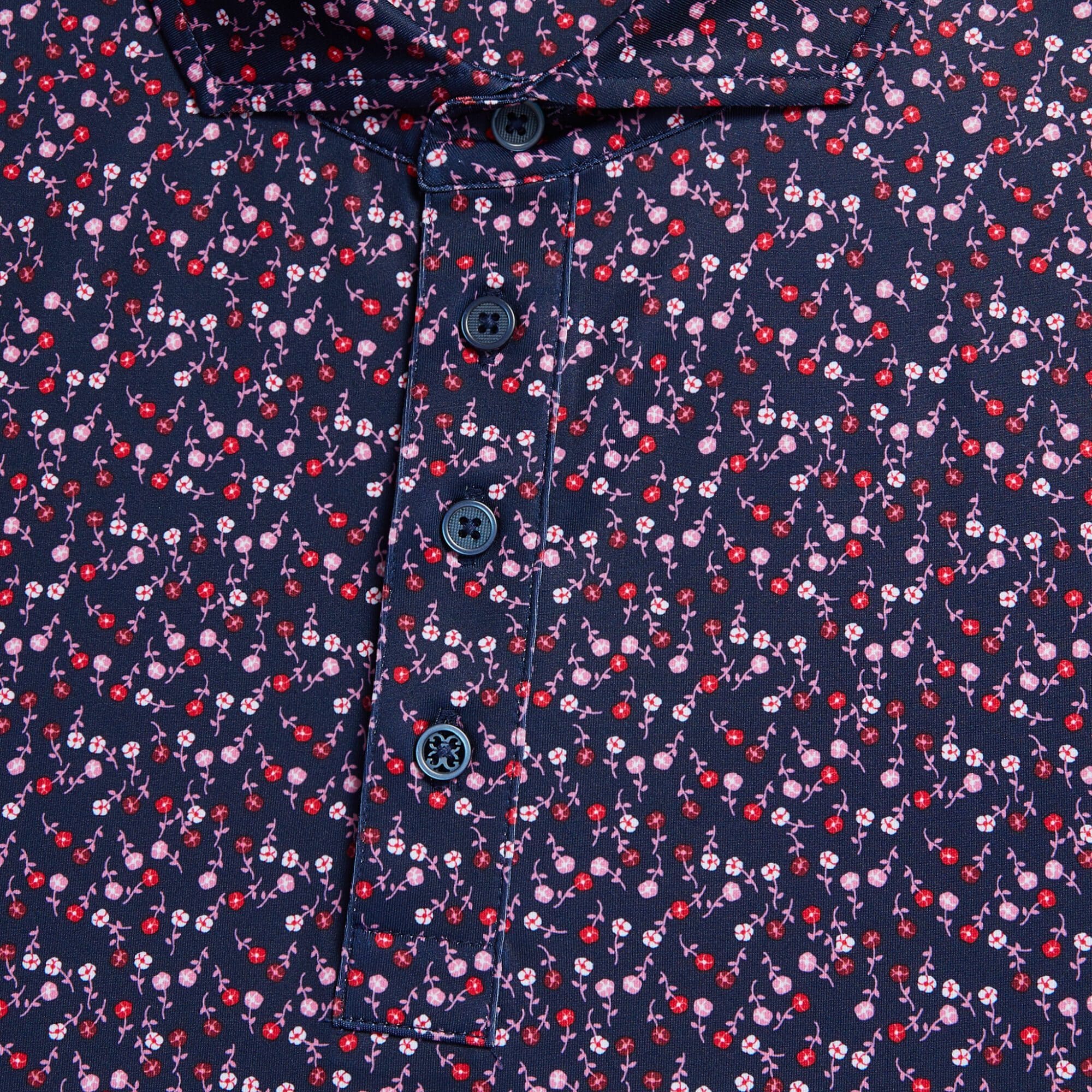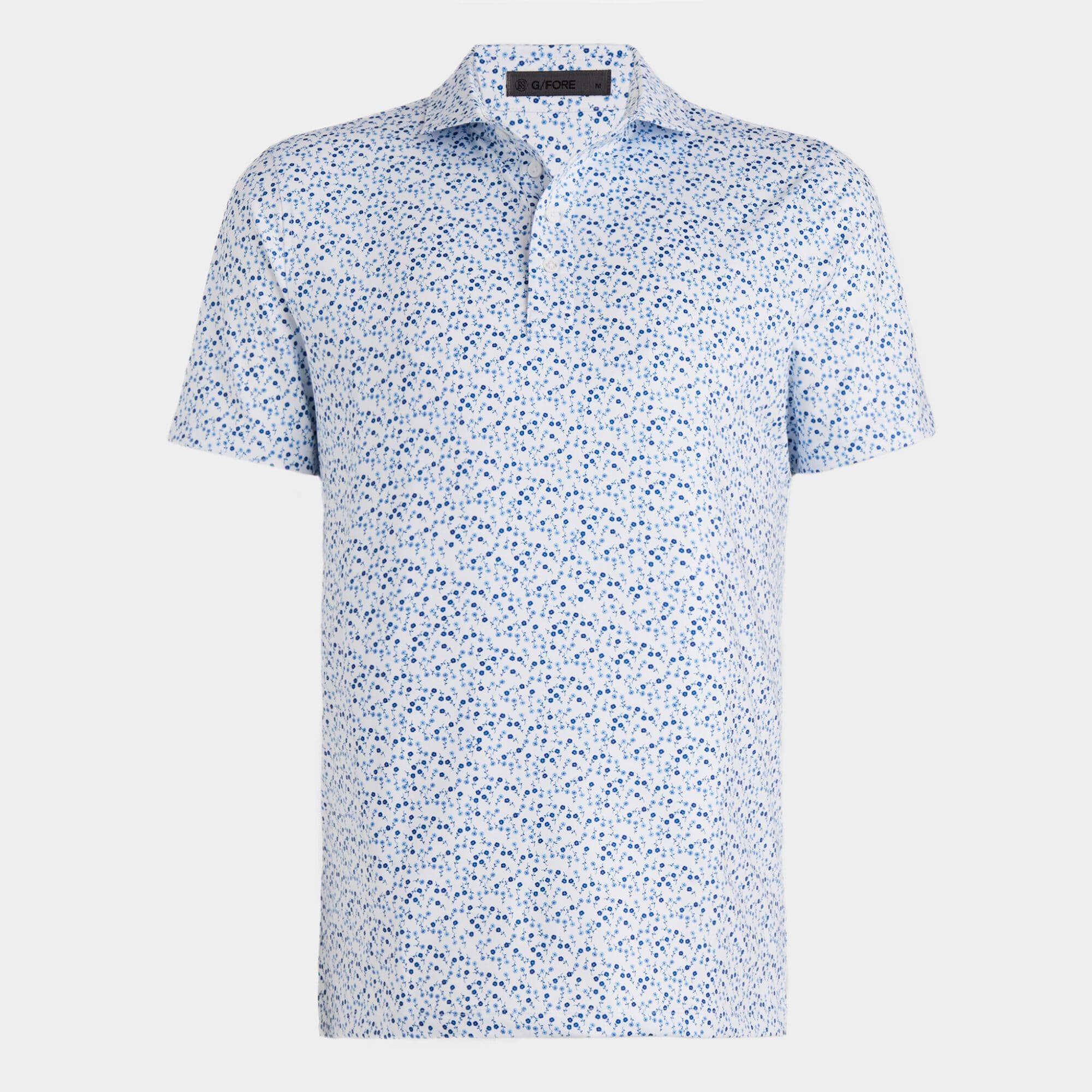 this tech jersey polo is the ultimate everyday essential for days at the clubhouse, the course, and in between. made of floral printed smooth tech jersey with moisture wicking and antimicrobial properties, plus unbeatable 4-way stretch, it's a must-have for any golfer's closet.