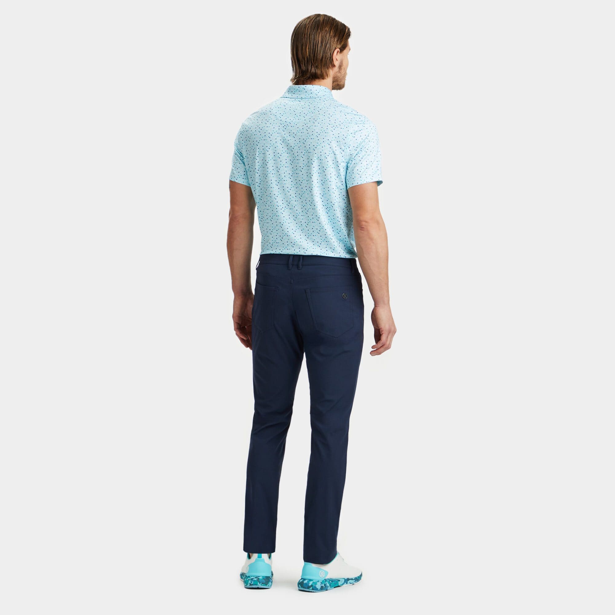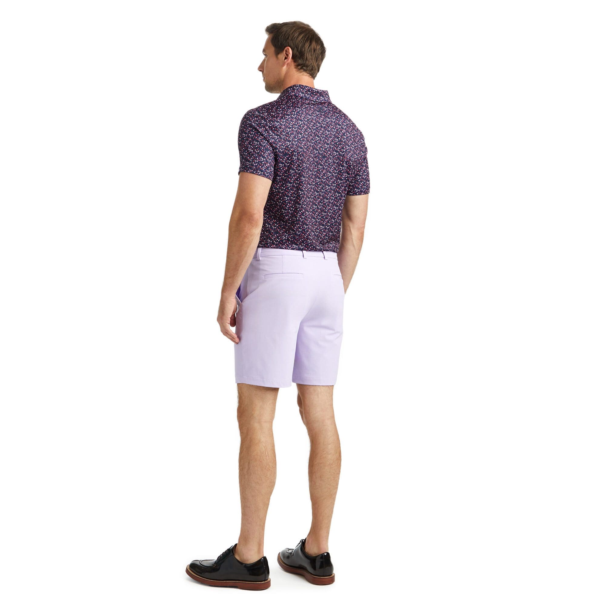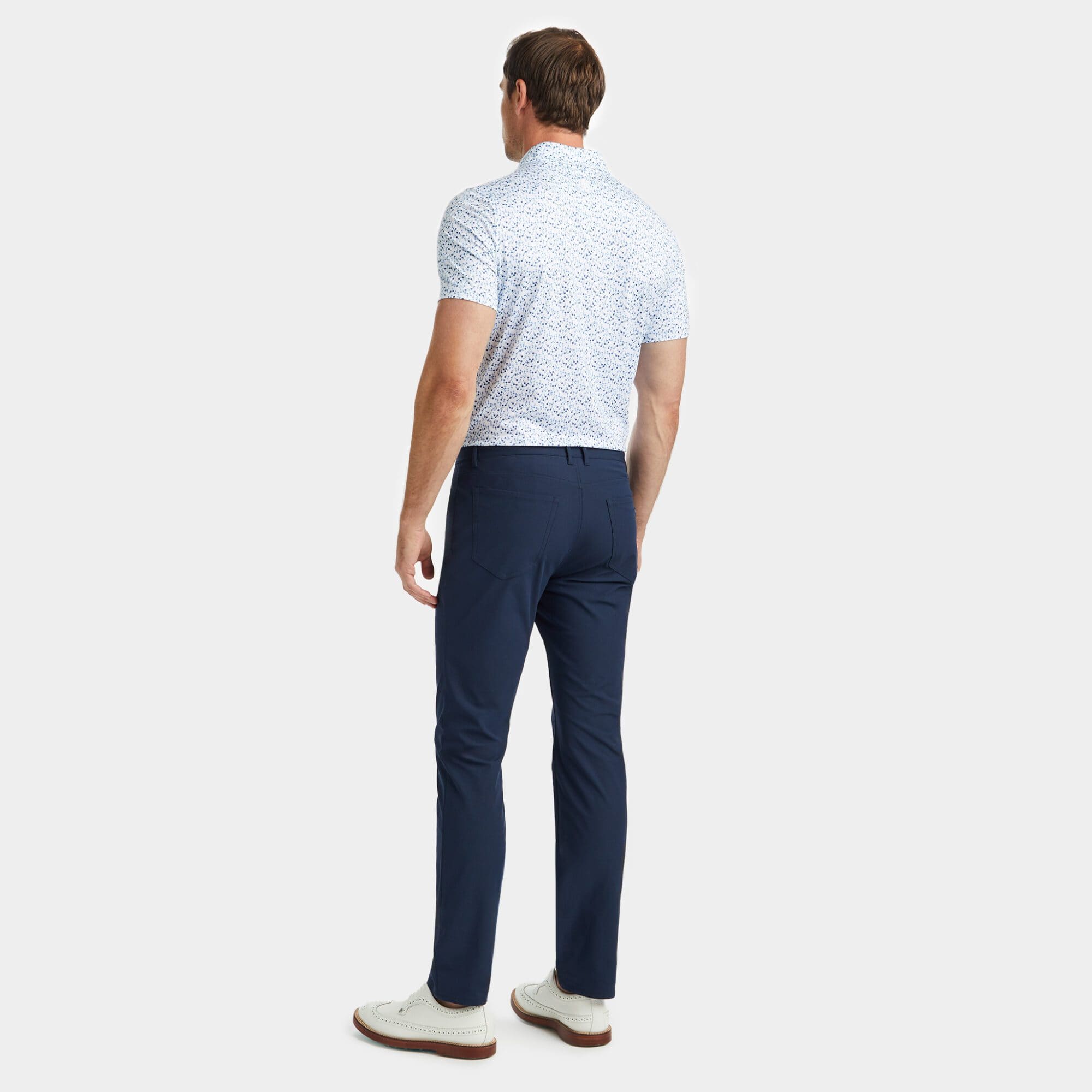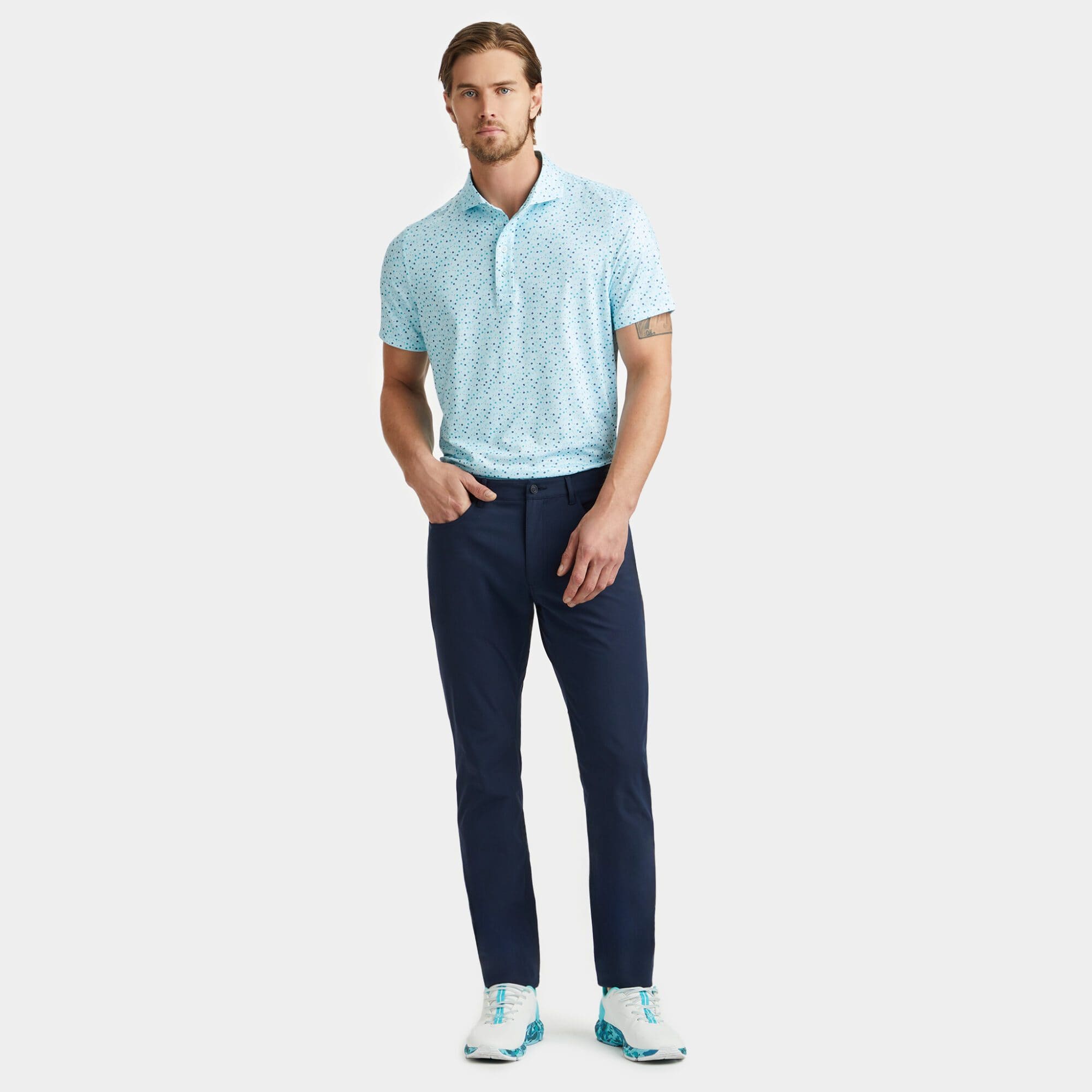 this tech jersey polo is the ultimate everyday essential for days at the clubhouse, the course, and in between. made of floral printed smooth tech jersey with moisture wicking and antimicrobial properties, plus unbeatable 4-way stretch, it's a must-have for any golfer's closet.