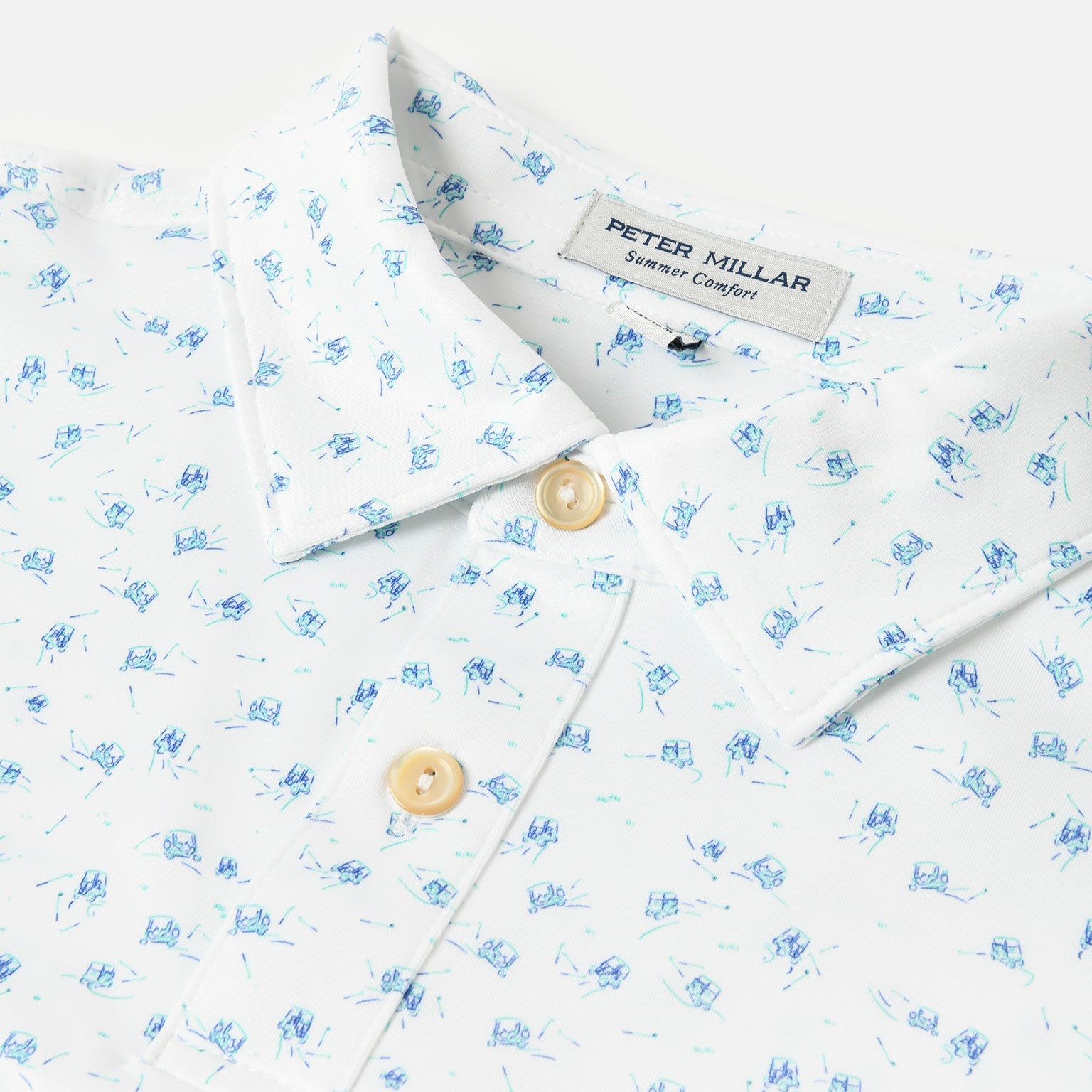an ideal pick for the course or the classroom, our youth performance polos are made from a lightweight, breathable fabric that offers four-way stretch, moisture-wicking, quick-dry and easy-care. designed with upf 50+ sun protection for added comfort and coverage in warm weather. this polo features a custom golf cart print for added style. finished with a sean self-fabric collar and two-button placket.