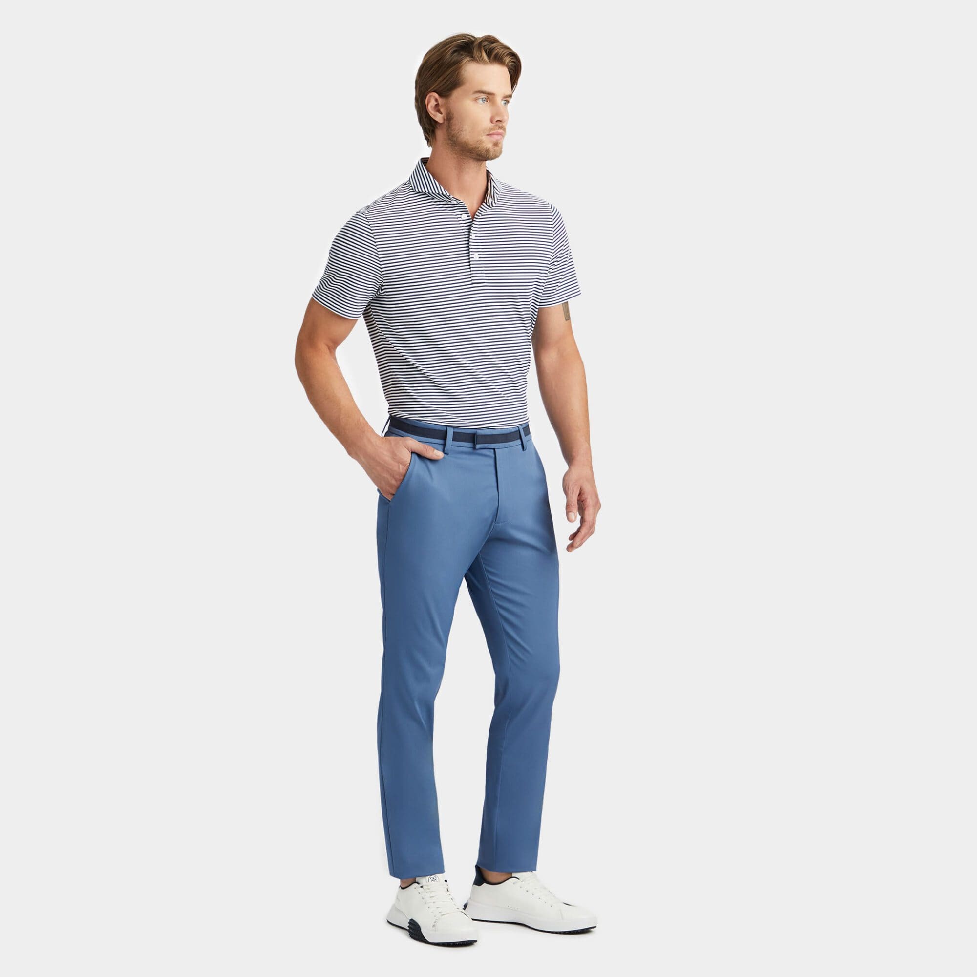 the club stretch tech twill straight leg trouser is made with nylon twill for a polished look with unbeatable comfort. its elegant silhouette is fit for the clubhouse and the office, making it a staple in every golfer's closet.