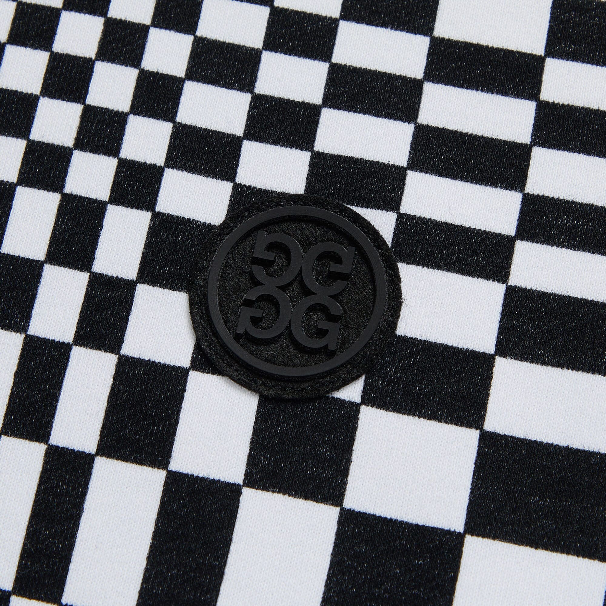 - features distorted check design throughout