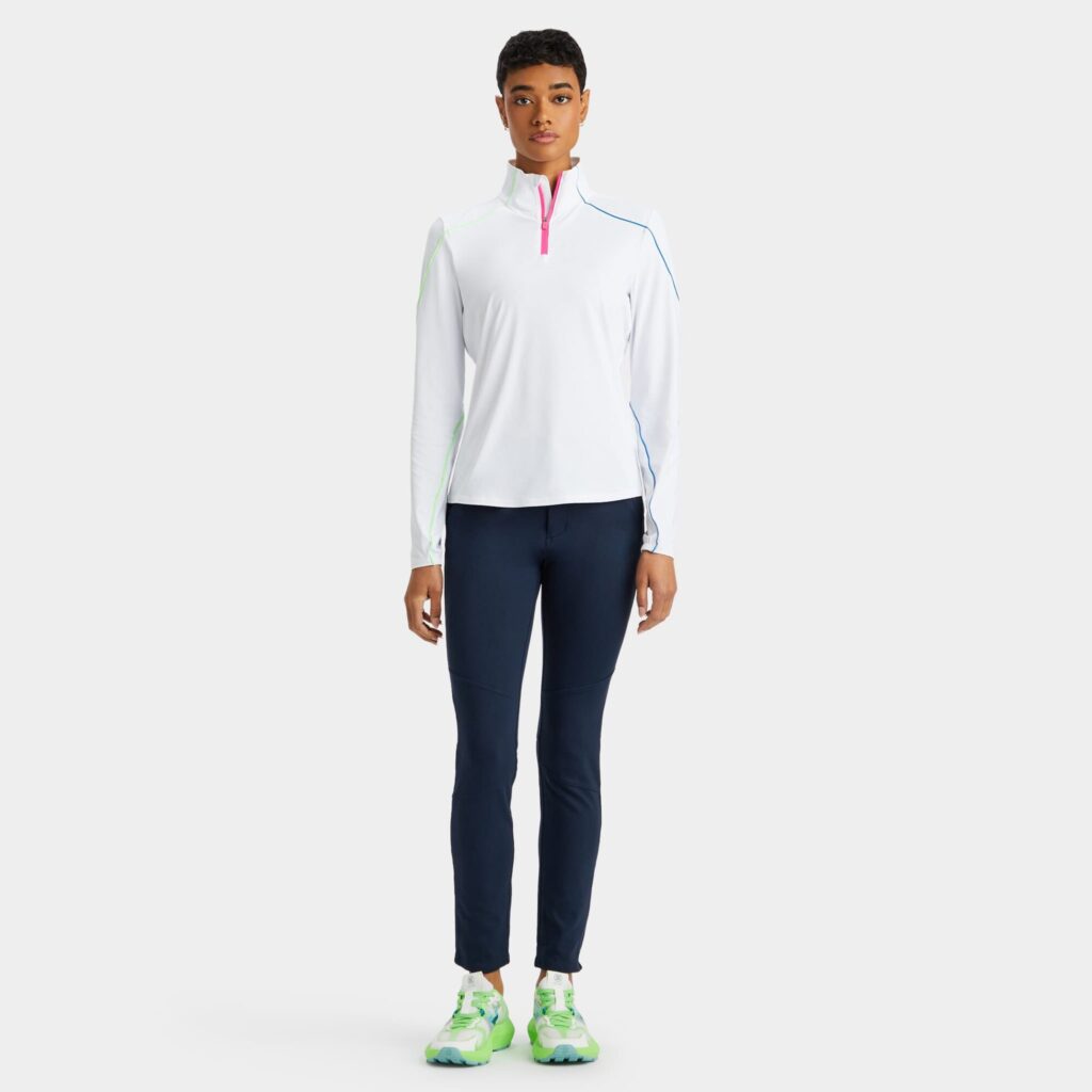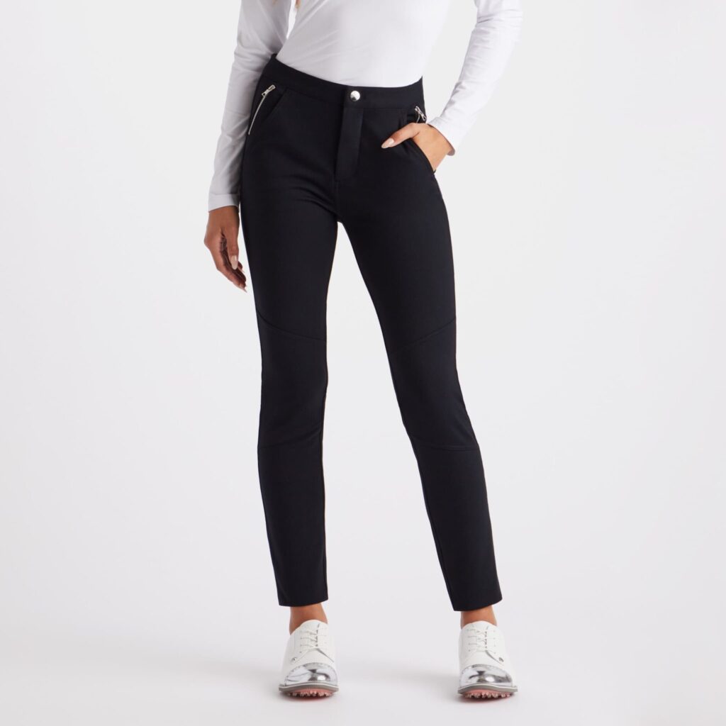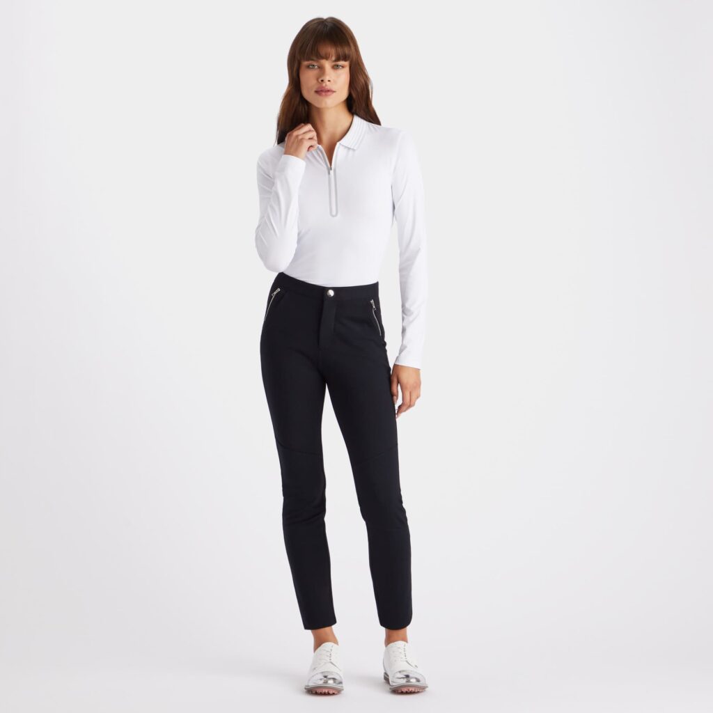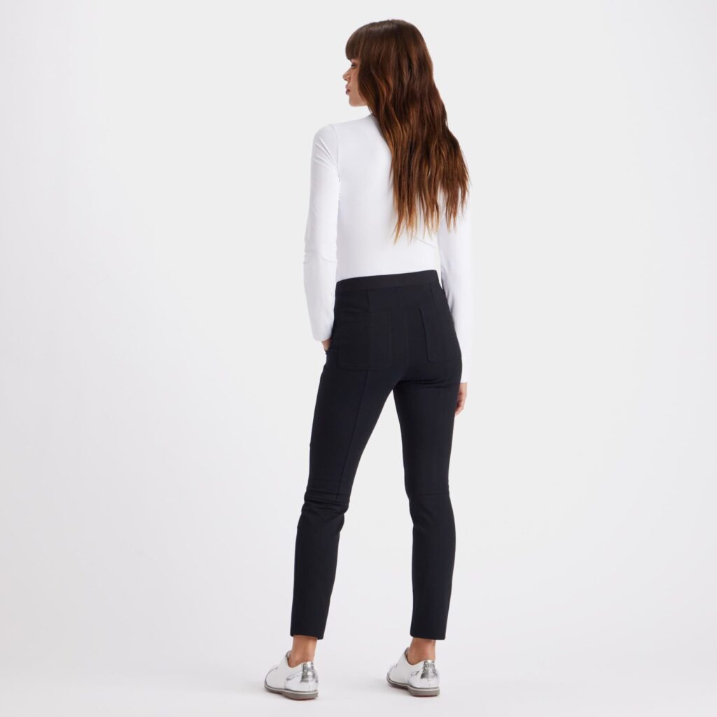 crafted from our luxurious, elastane-rich ponte fabric, these moto-inspired pants are designed to hold you in and highlight your curves. select your usual g/fore size for a more fitted look or size up for a looser trouser fit.
