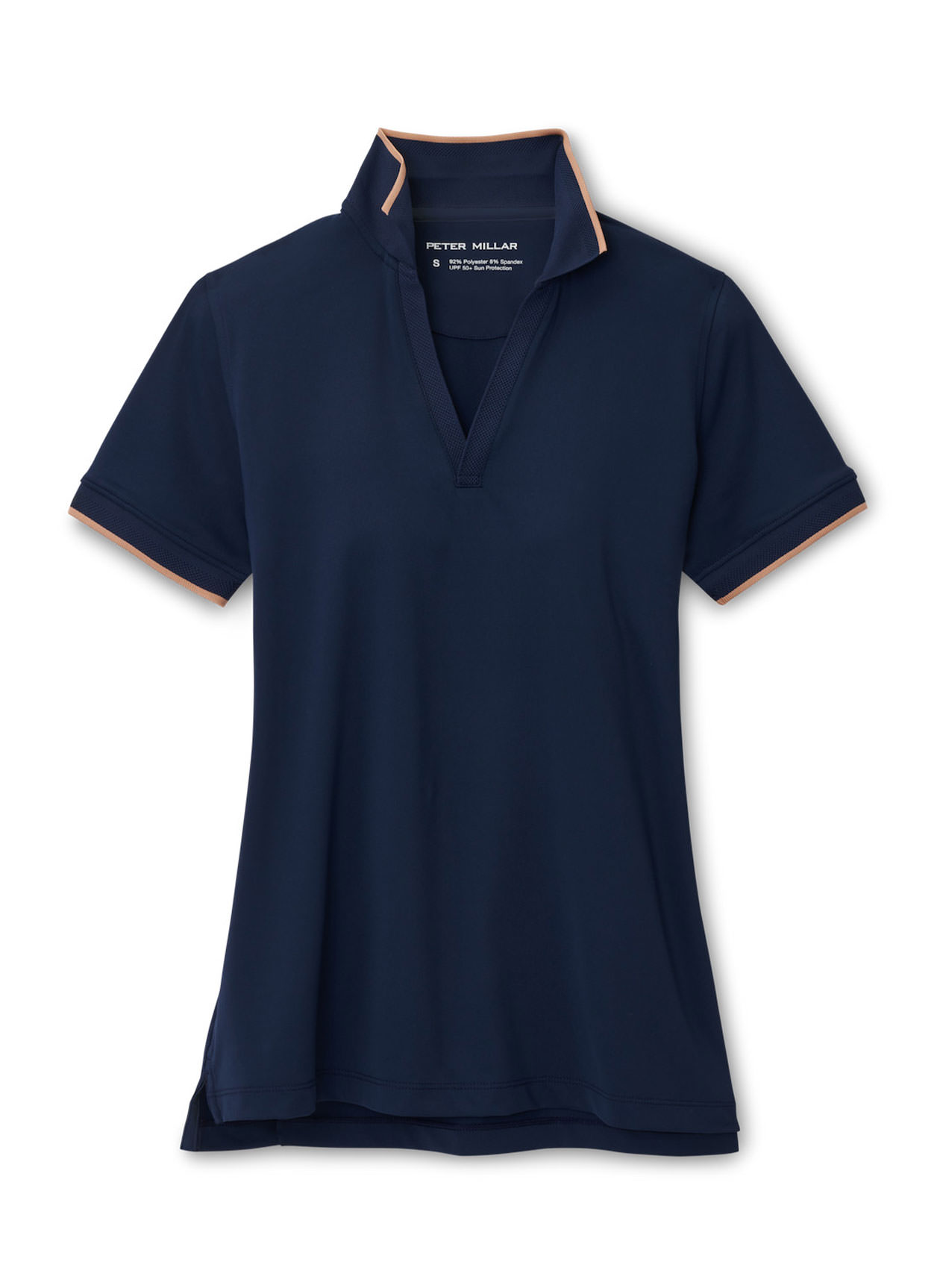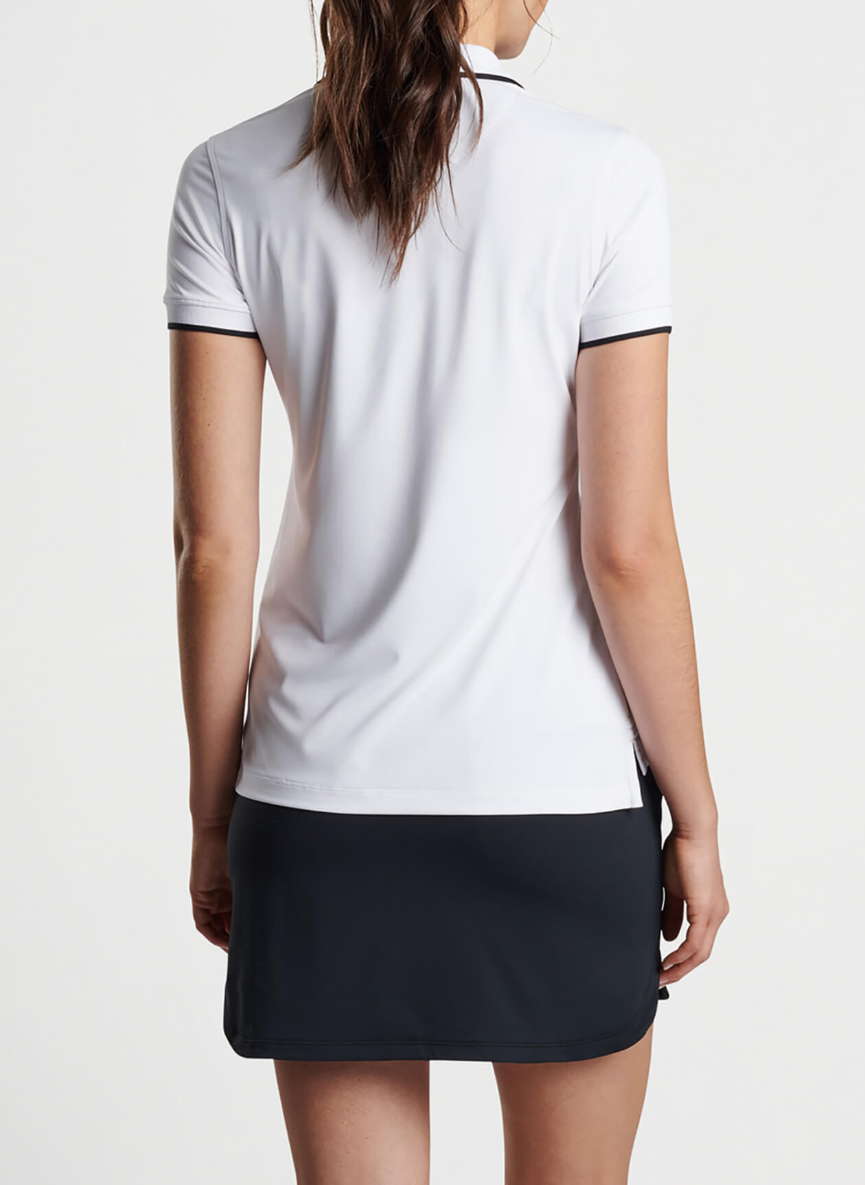 peter millar, one of the leading golf polo brands, has created the golf shirt women will easily find appealing for a day on the course. the betty drop-v polo is crafted from moisture-wicking four-way stretch material for optimal comfort. stylish touches come to the fore with a knit collar, banded sleeves and notched hem. and in true peter millar fashion with its custom golf polos, the betty shirt is perfect for casual office days, too.