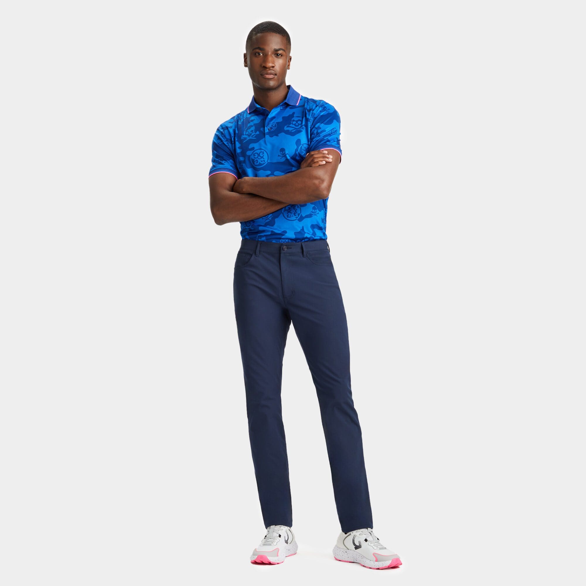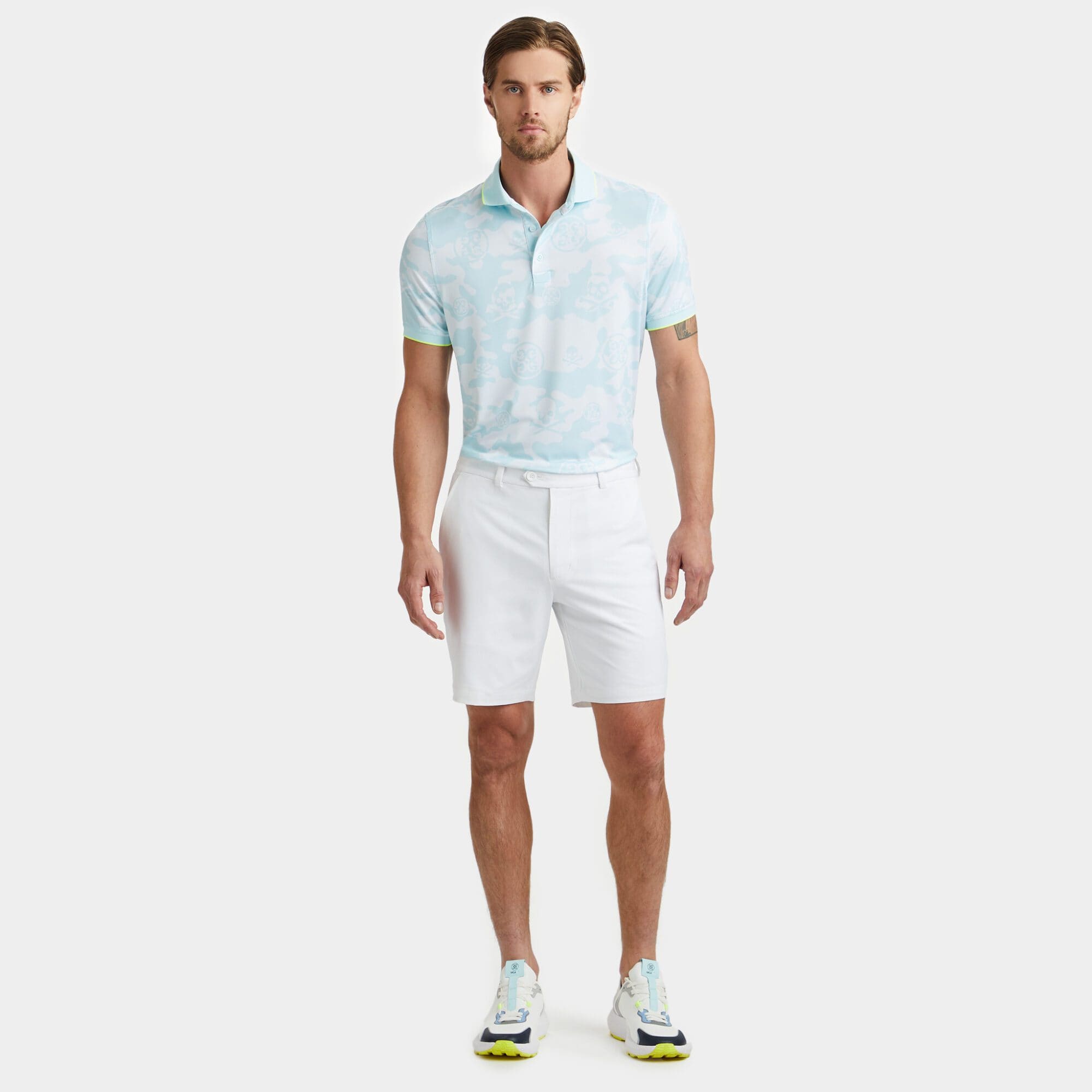 this tech jersey polo is the ultimate everyday essential for days at the clubhouse, the course, and in between. made of camo & logo printed smooth tech jersey with moisture wicking and antibacterial properties, plus unbeatable 4-way stretch, it's a must-have for any golfer's closet.