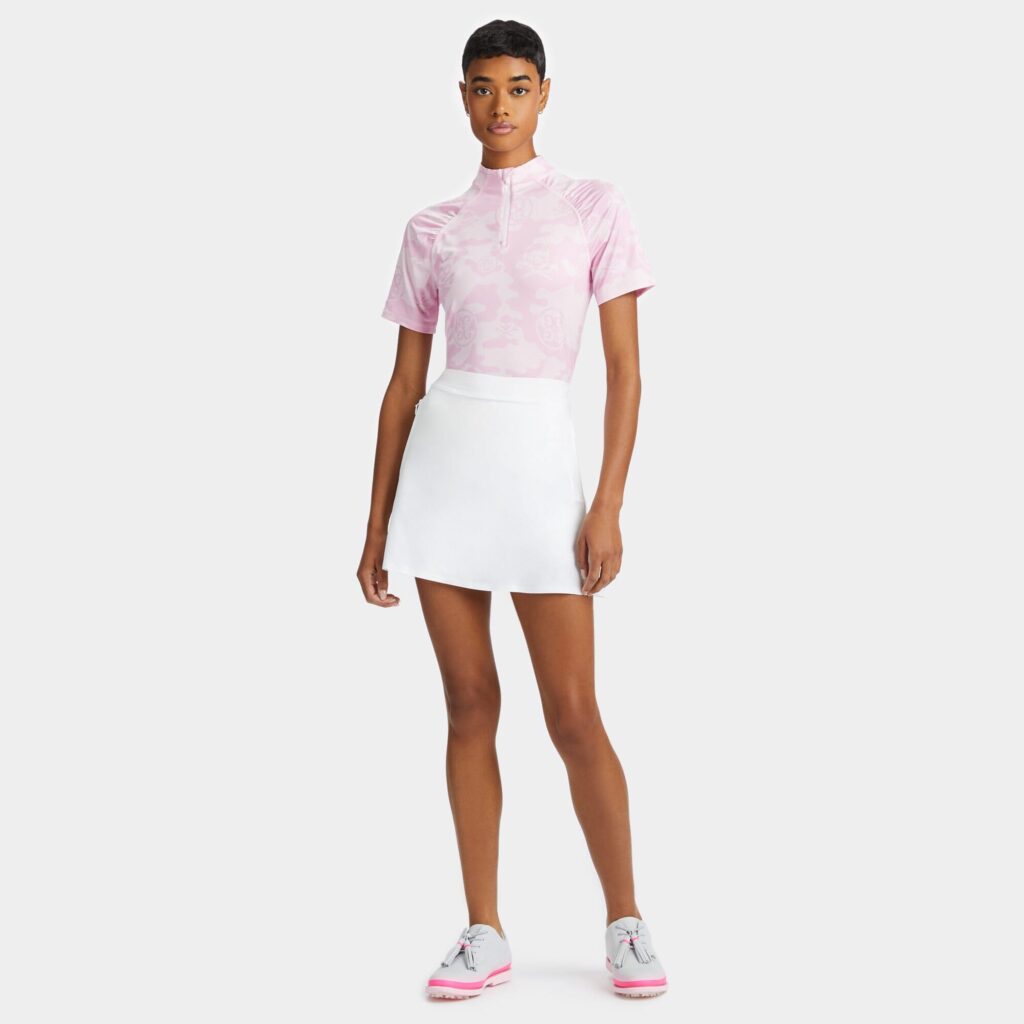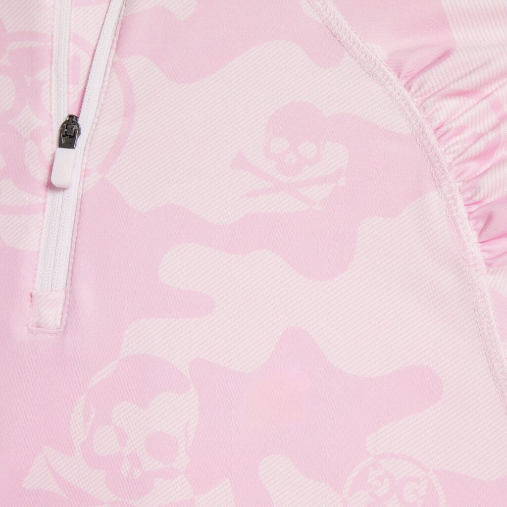 covered in our circle g's and skull & tees logos, this camo quarter zip pullover is made from 4-way stretch tech jersey for ultra comfort and flexibility. equipped with moisture wicking and antimicrobial properties, it's a staple layer for any golfer's wardrobe. pair with our side stripe stretch technical twill trouser for any day on the greens.
