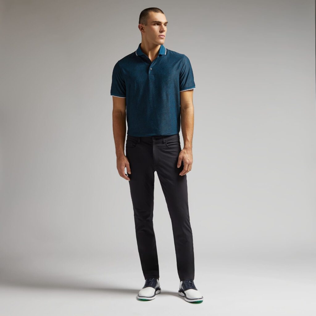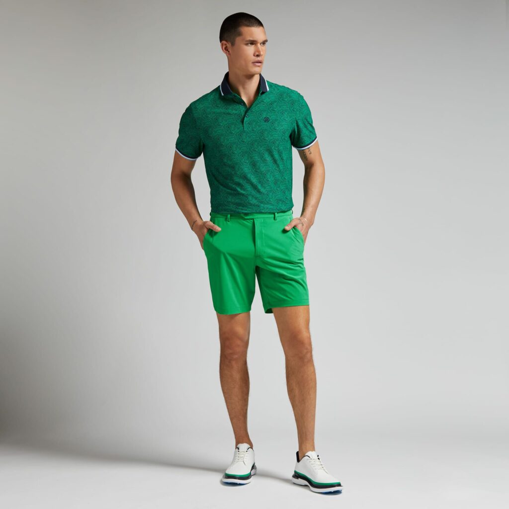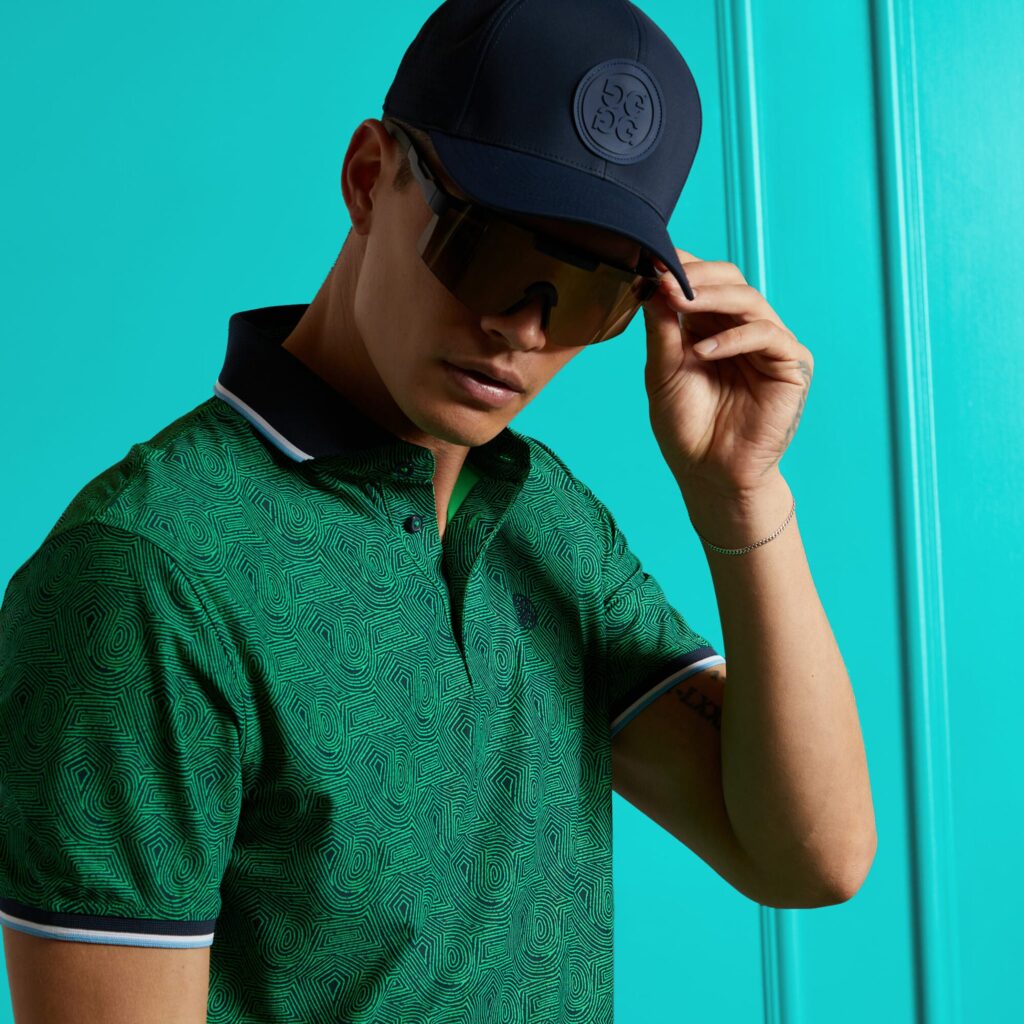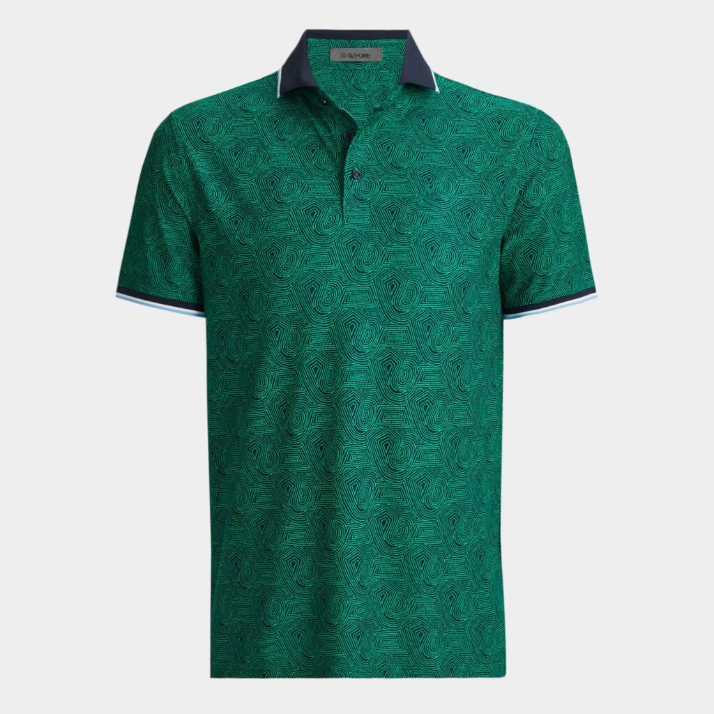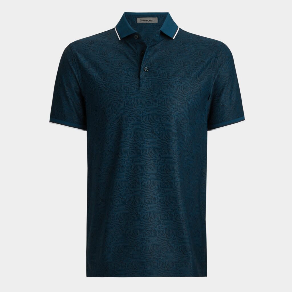 covered in g/fore script stripe print, this tech jersey polo is the ultimate everyday essential for days at the clubhouse, the course, and in between. made of smooth tech stretch jersey with moisture wicking and antimicrobial properties, plus unbeatable 4-way stretch, it's a must-have for any golfer's closet.