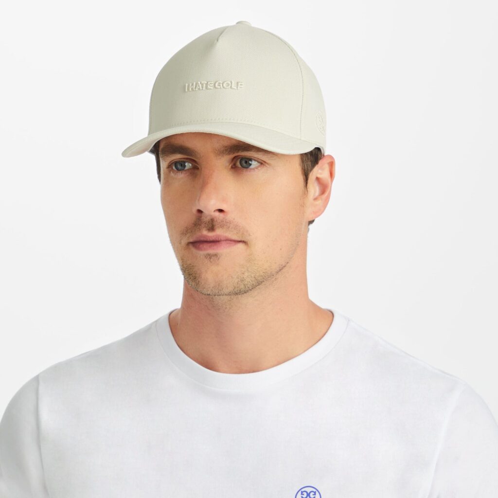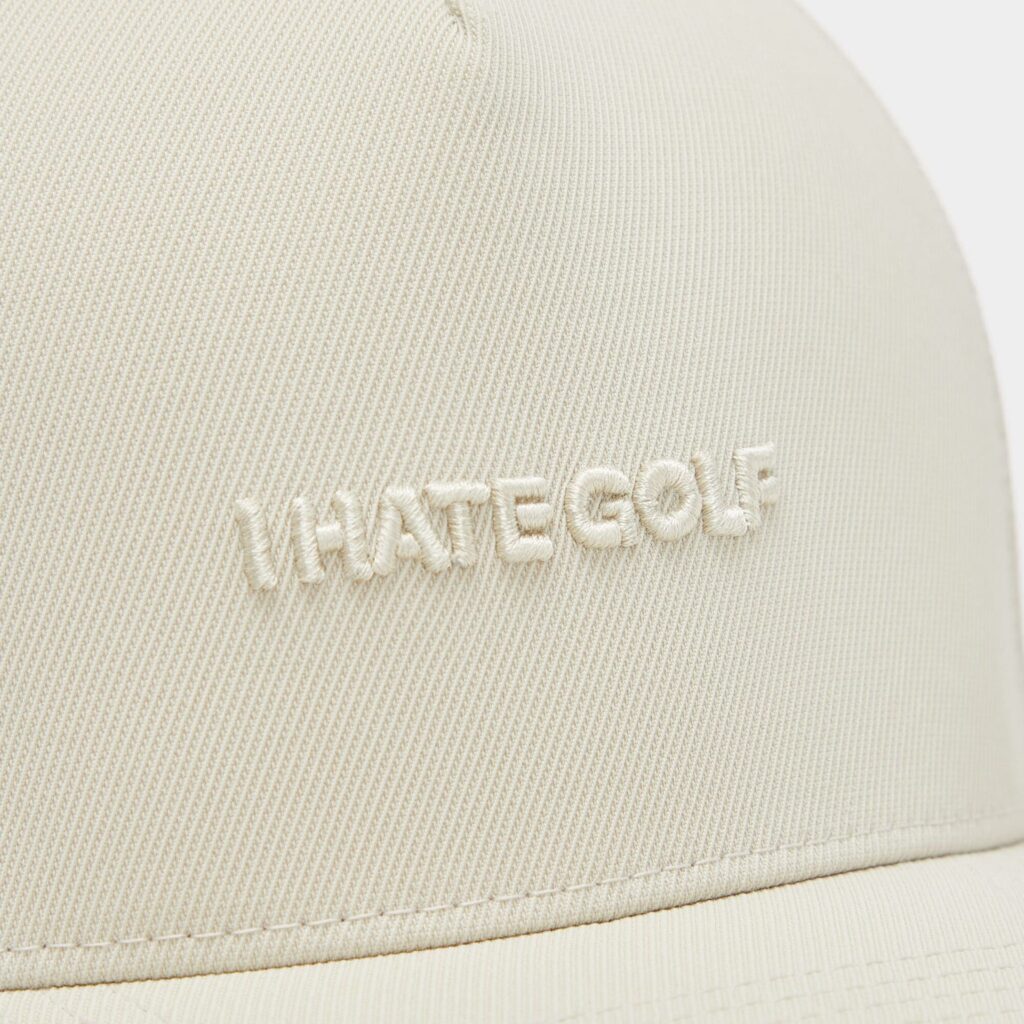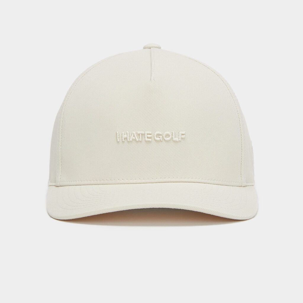 - features an embroidered 'i hate golf' along the front