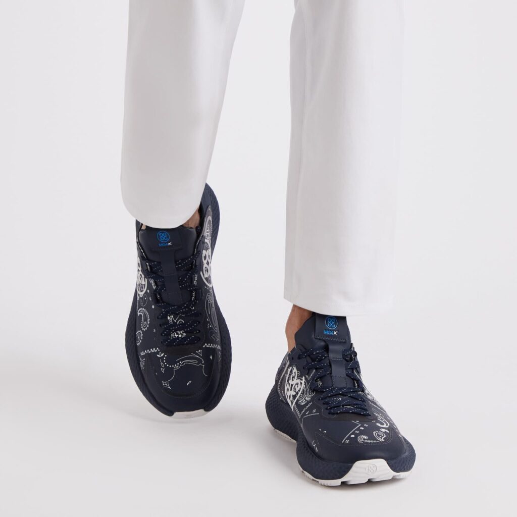 the mg4x2+ golf cross trainer is a multi-functional shoe that takes you from the street to the course with ease. featuring a high abrasion resistant waterproof upper, an auxetic lattice midsole for all-day support, a sawtooth traction pattern for grip, and finished with our staple triple-density foam cushion footbed for a massage with every step.