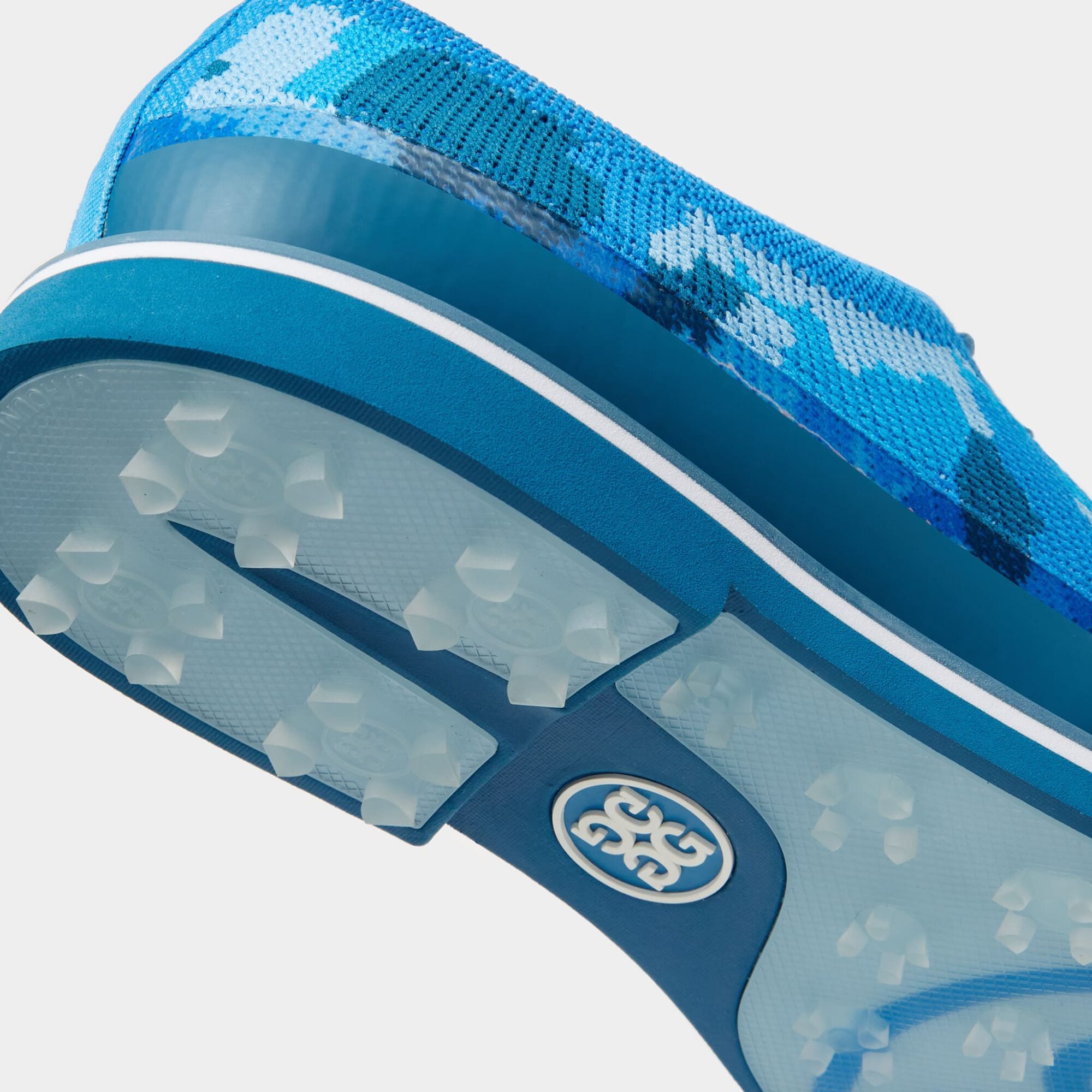 custom designed by g/fore’s team of footwear experts, this style features a water resistant engineered knit upper in a tonal camouflage print. the camo knit tuxedo gallivanter boasts an ultra lightweight sole paired with a bespoke cleat design for optimal on-course traction. this shoe sports a washable and antimicrobial, triple density foam cushion footbed for superior comfort along with comfort system technology which allows airflow to the feet and provides the ultimate massage for your soles.
