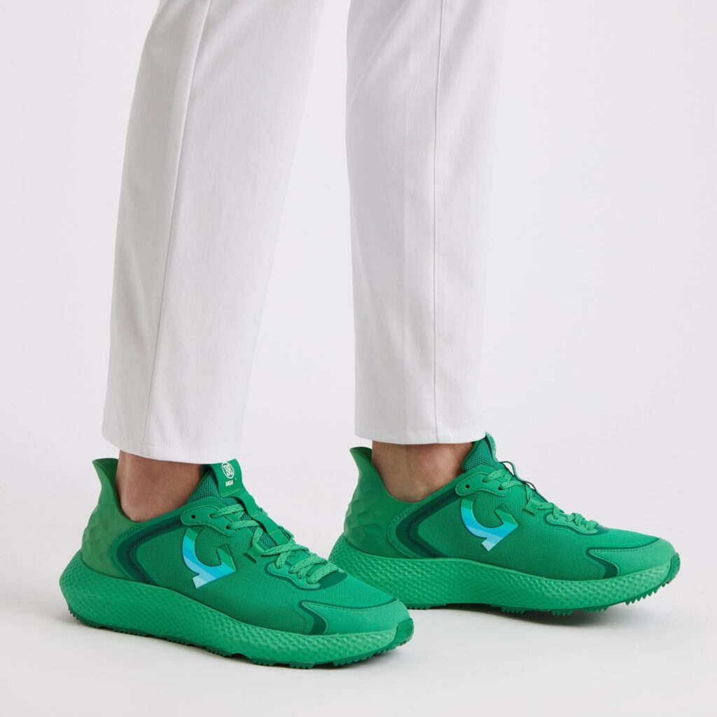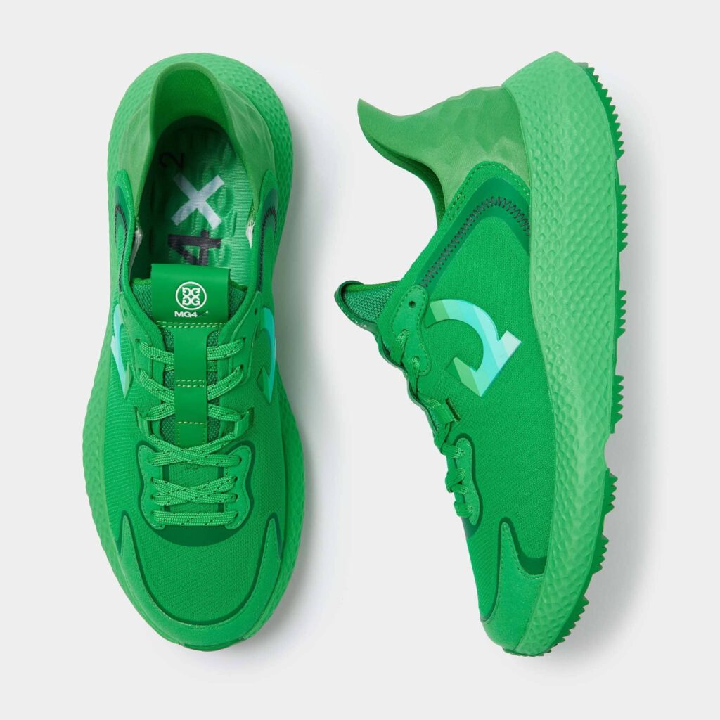 the mg4x2 golf cross trainer is a multi-functional shoe that takes you from the street to the course with ease. featuring a one-piece engineered waterproof g/dry knit upper for unbeatable comfort, an auxetic lattice midsole for all-day support, a sawtooth traction pattern for grip, and finished with our staple triple-density foam cushion footbed for a massage with every step.