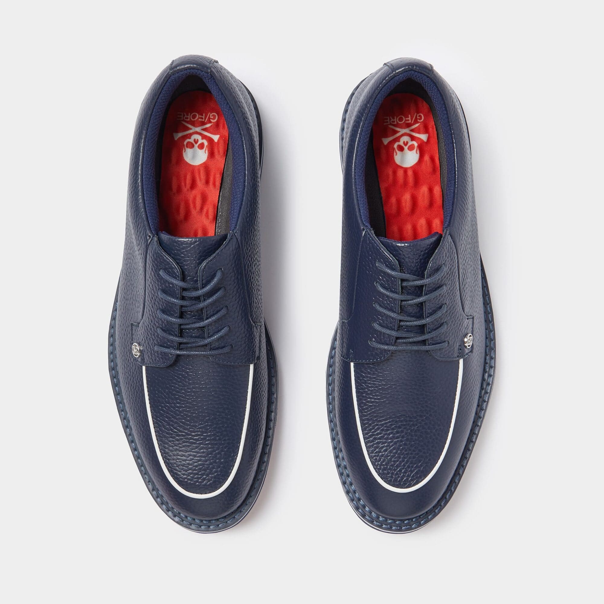 stylish moc toe leather piping detail