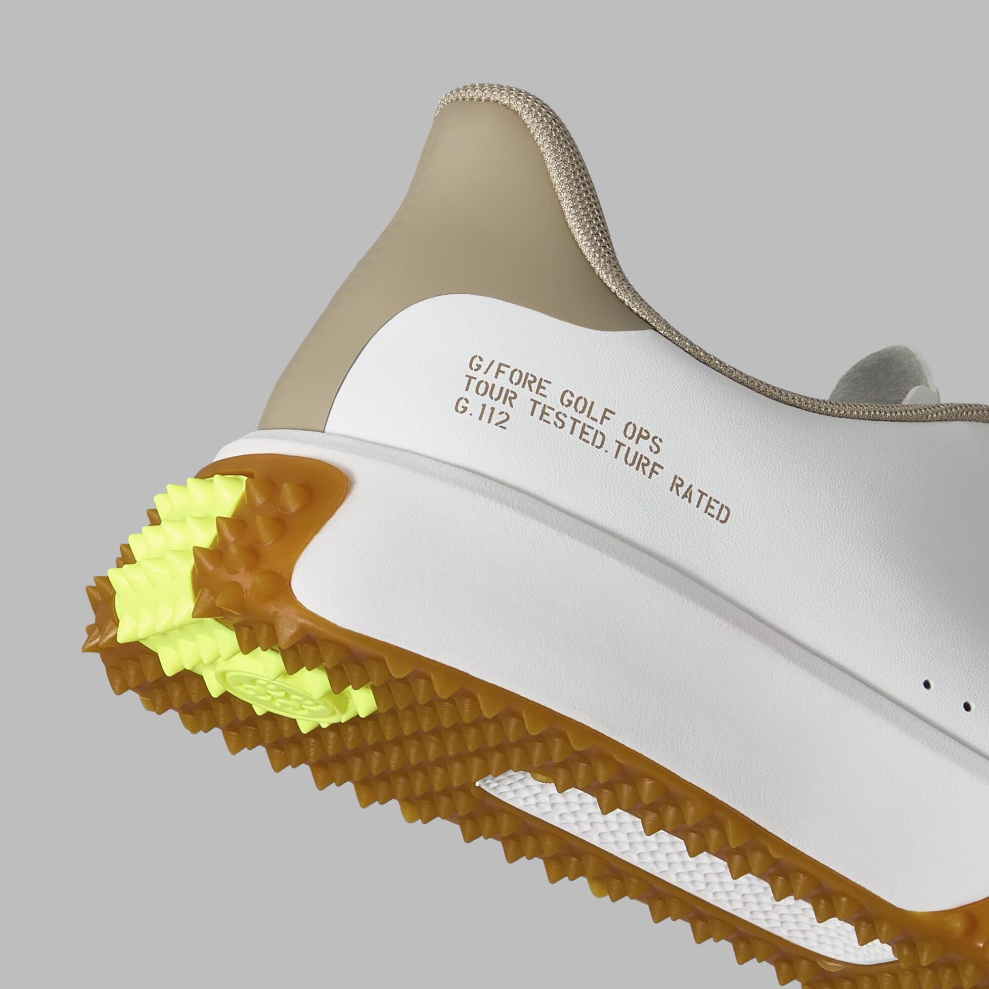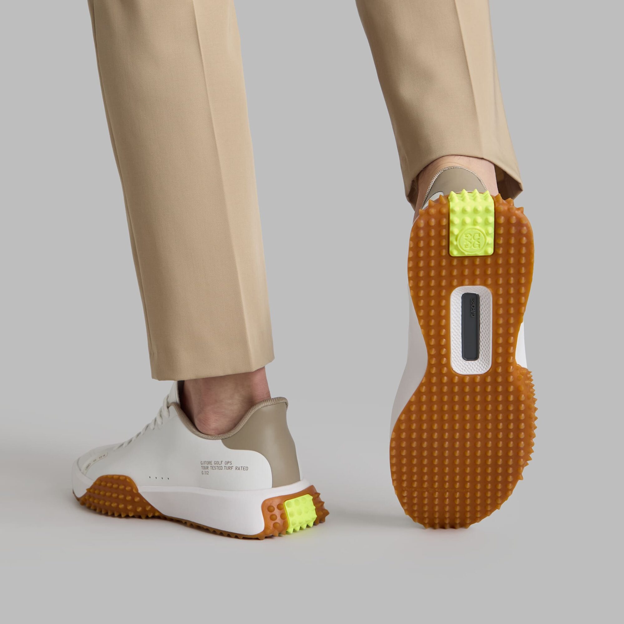 the modern g.112 golf shoe has a sleek silhouette and low drop design to enhance your connection to the ground. equipped for optimal grip with heel-to-toe turf traction, it's the go-to shoe for all day play with a comfortable eva midsole and mesh lining. wear with one of our straight leg pants and classic polos for a look that works on the course or at the clubhouse.