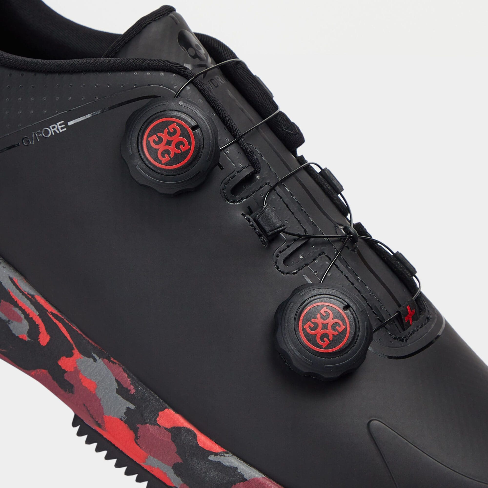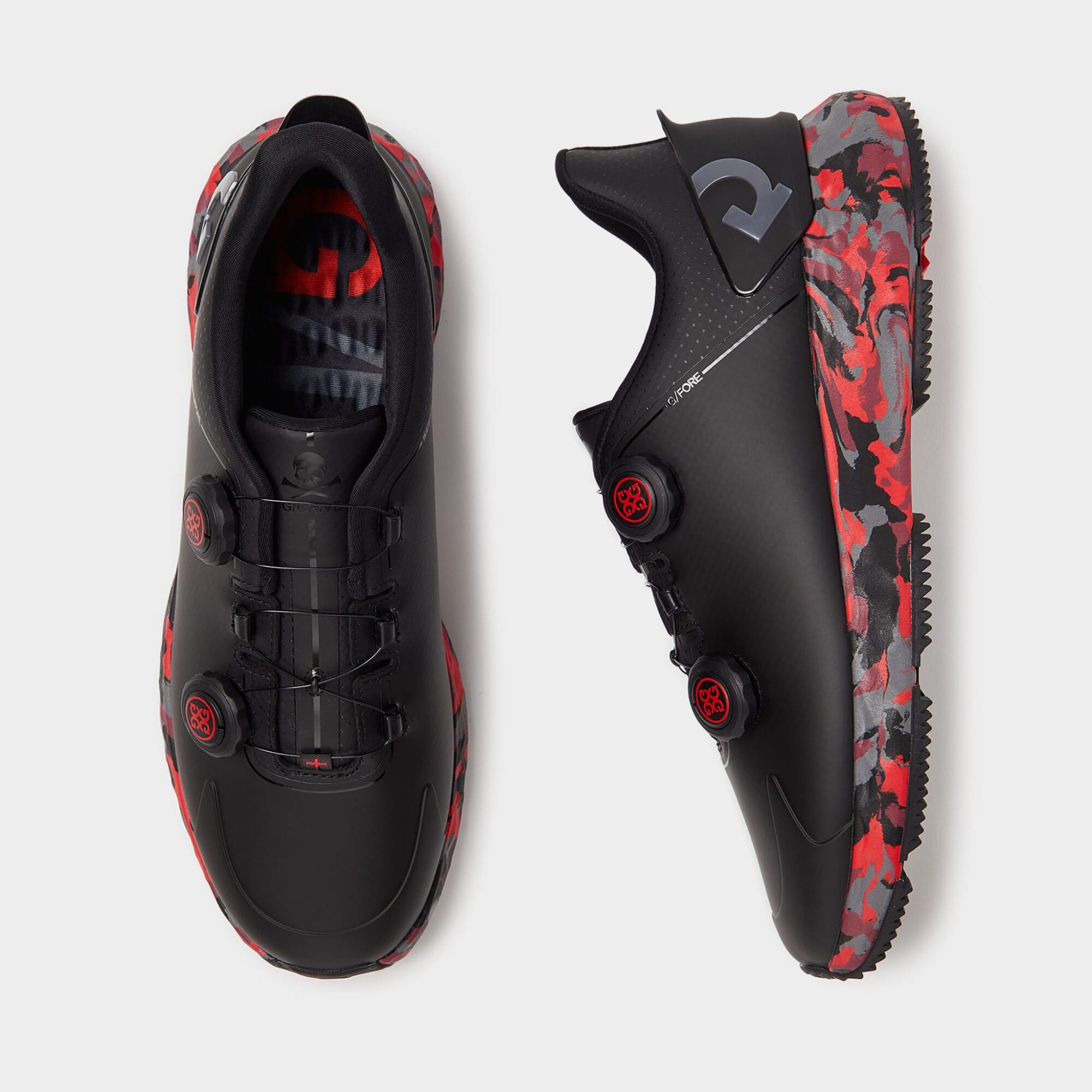 the men's g/drive perforated t.p.u. camo golf shoe boasts an entirely waterproof design with cable lacing and a cartridge dial system that evenly distributes tension for the perfect fit. the patented macneil technology fast twist closure system replaces traditional laces with a customized fit for enhanced support. this high abrasion resistant style also features a washable, triple density foam cushion footbed for unbeatable comfort as well as odor control while the auxetic lattice midsole and 3d molded heel cap provides rebound and stability for long days on the course.