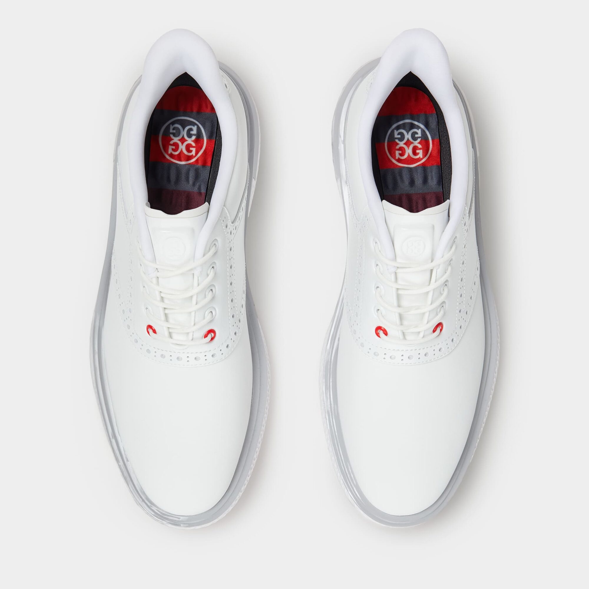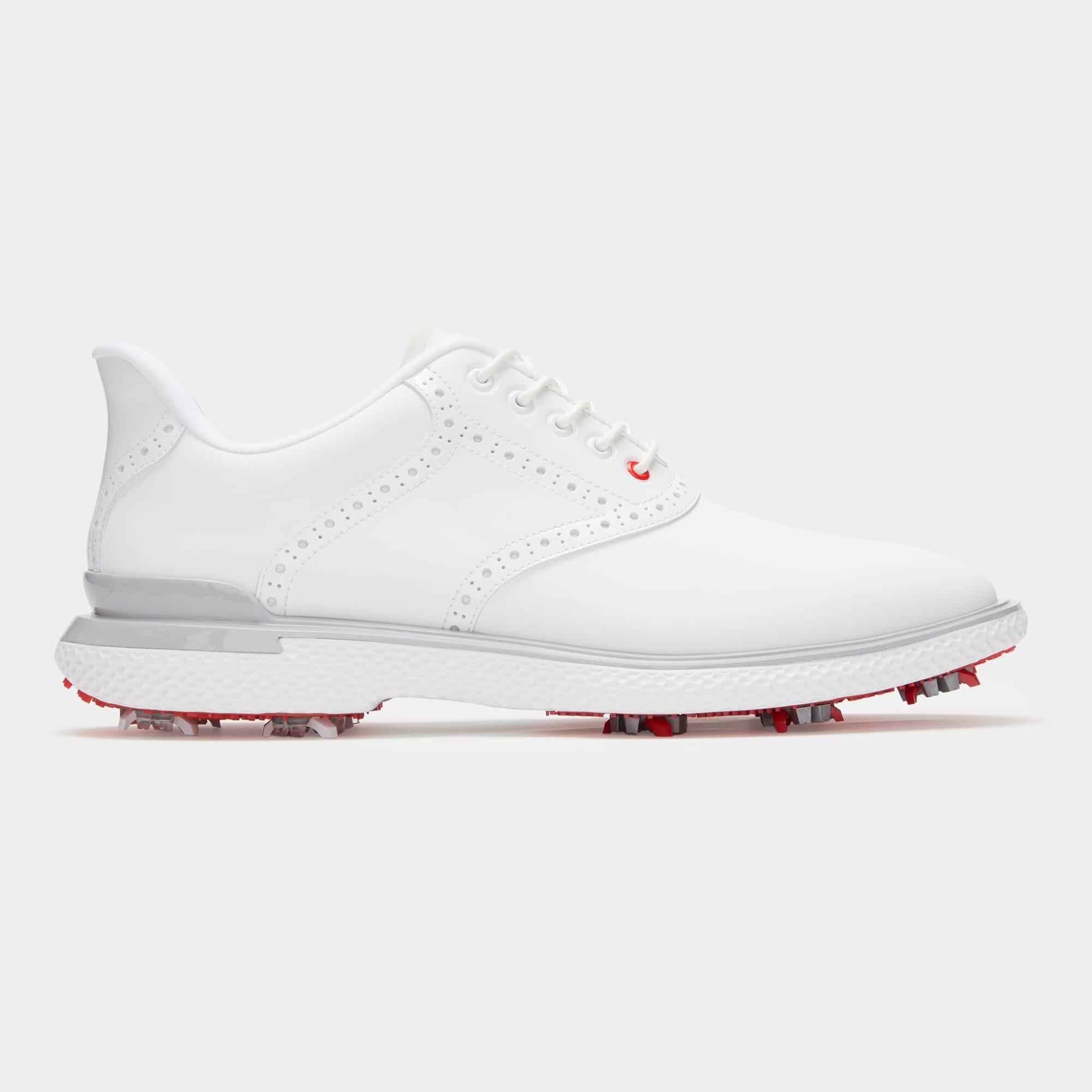 a combination of the mg4+'s modern performance details with the gallivanter's classic silhouette, the gallivan2r g/lock is a recent addition to our vast selection of innovative footwear. equipped with replaceable softspikes, an auxetic lattice midsole, heel counter security, cushioned interior, and performance textile lining, its ultra lightweight and comfortable design ensures fully locked-in stability with every swing. the waterproof t.p.u. upper won't let the weather stop you either.