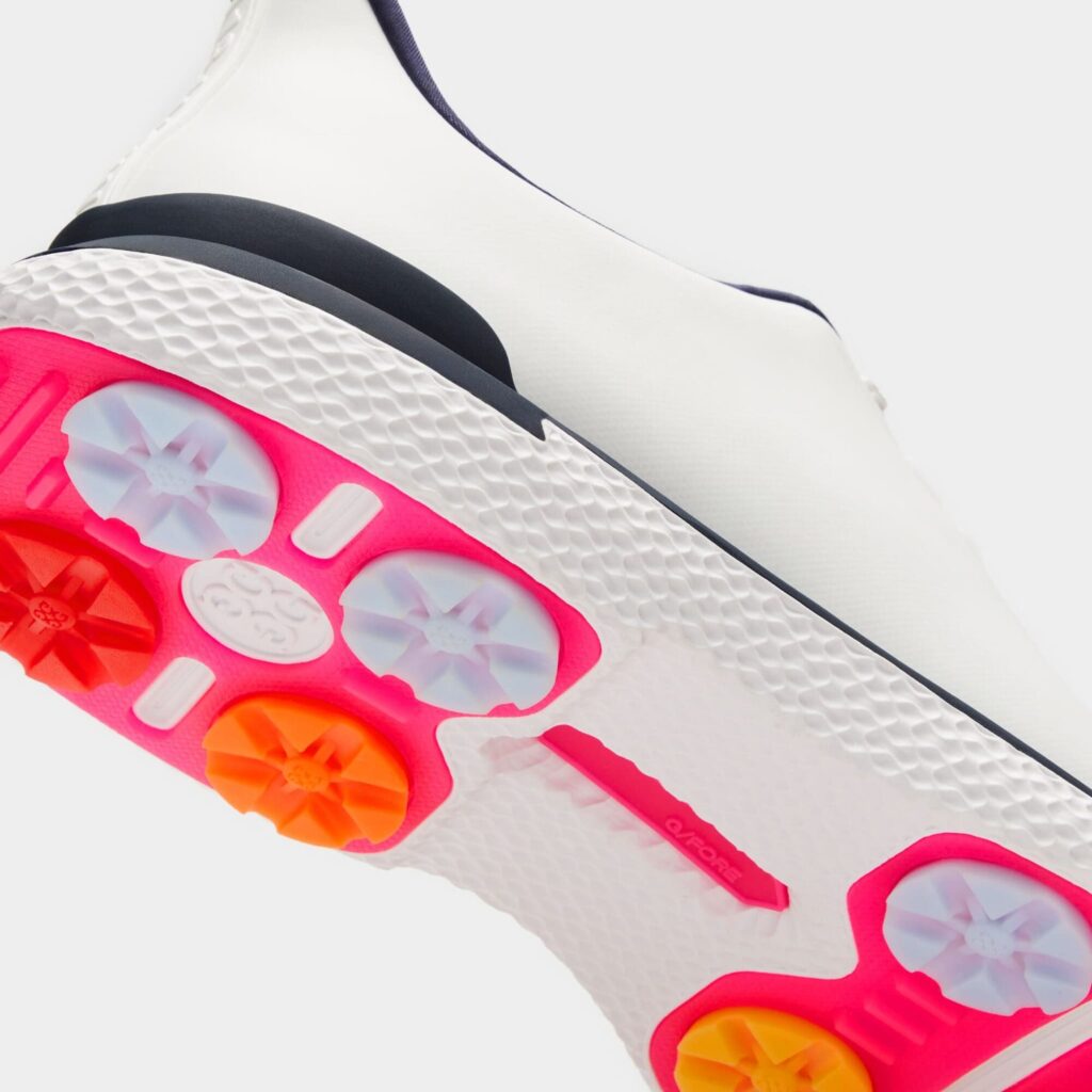a combination of the mg4+'s modern performance details with the gallivanter's classic silhouette, the new gallivan2r is a fresh addition to our wide selection of popular golf shoes. equipped with an auxetic lattice midsole, integrated rubber cleat system, heel cap, cushioned interior, and antimicrobial mesh lining, it's intended for comfort and fully locked-in stability with every swing. the waterproof t.p.u. upper won't let the weather stop you either.