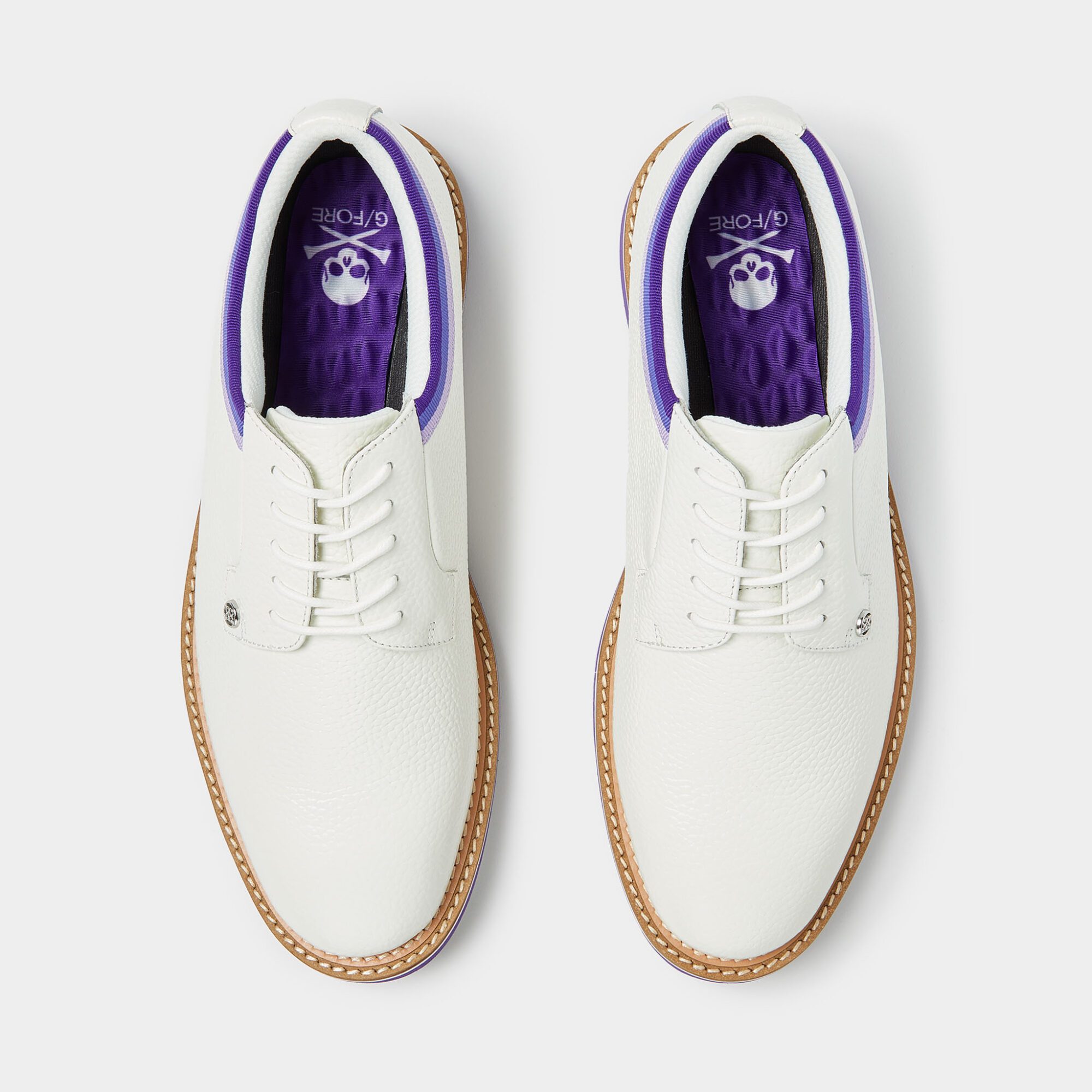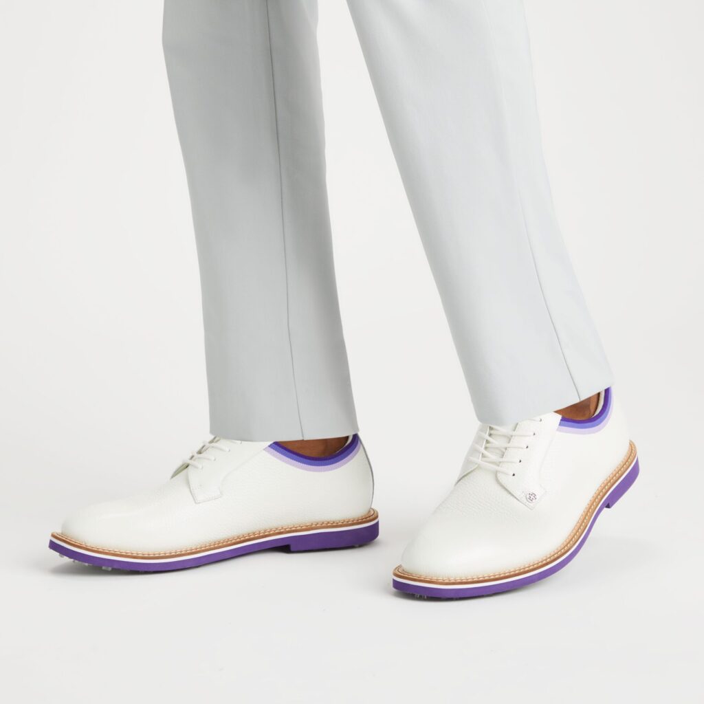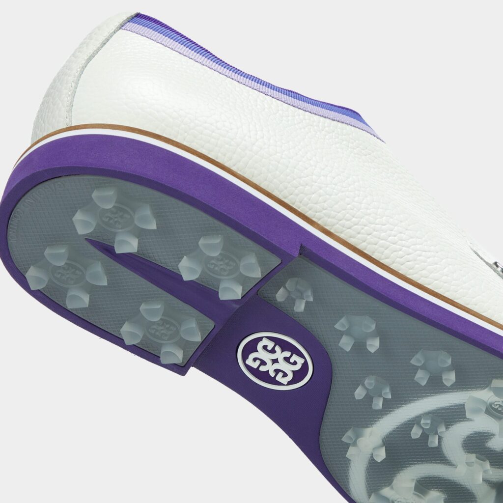 as stylish as it is comfortable, this pebble grosgrain gallivanter combines an athletic fit with premium waterproof leather. our popular golf shoe boasts an ultra lightweight sole coupled with a bespoke cleat design for optimal on-course traction. sporting a washable and antimicrobial, triple density foam cushion footbed along with comfort system technology, this classic gallivanter allows airflow to the feet and provides the ultimate massage for your soles.