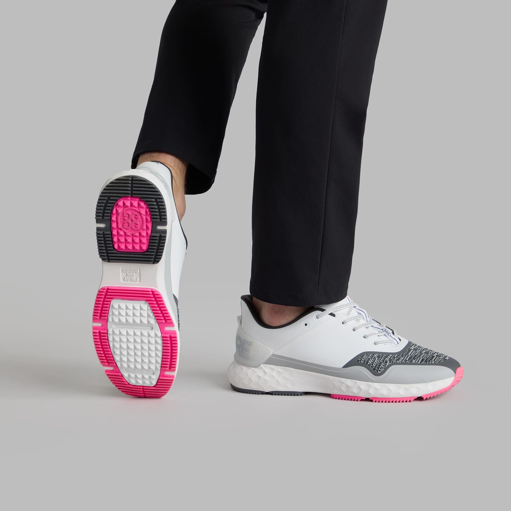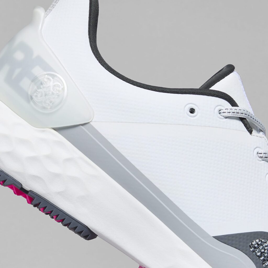 the mg4+ golf shoe is the perfect combination of lightweight comfort and technical performance. building upon the necessities of a classic golf shoe, this stippled style adds a modern perspective. boasting a washable, triple density foam cushion footbed and auxetic lattice midsole, it has a two-piece rubber outsole and 3d molded external heel counter for fit, stability, and support.