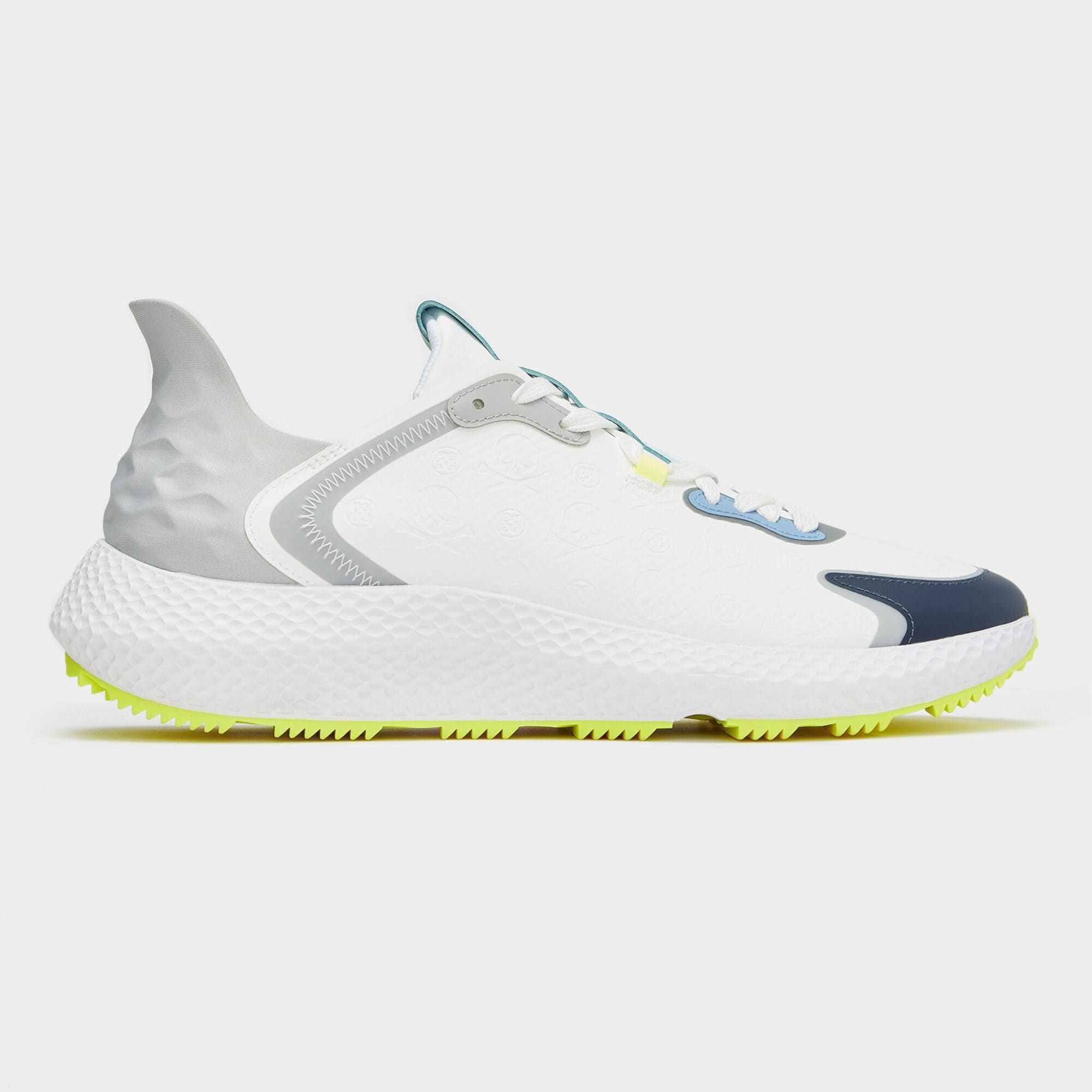 the men's mg4x2 knit hybrid golf cross trainer is a multi-functional shoe that takes you easily from the street to the course. featuring a one-piece engineered water repellent g/dry knit upper for unbeatable comfort, it boasts an auxetic lattice midsole for all-day support, a sawtooth traction pattern for grip, and our staple triple-density foam cushion footbed for a massage with every step.