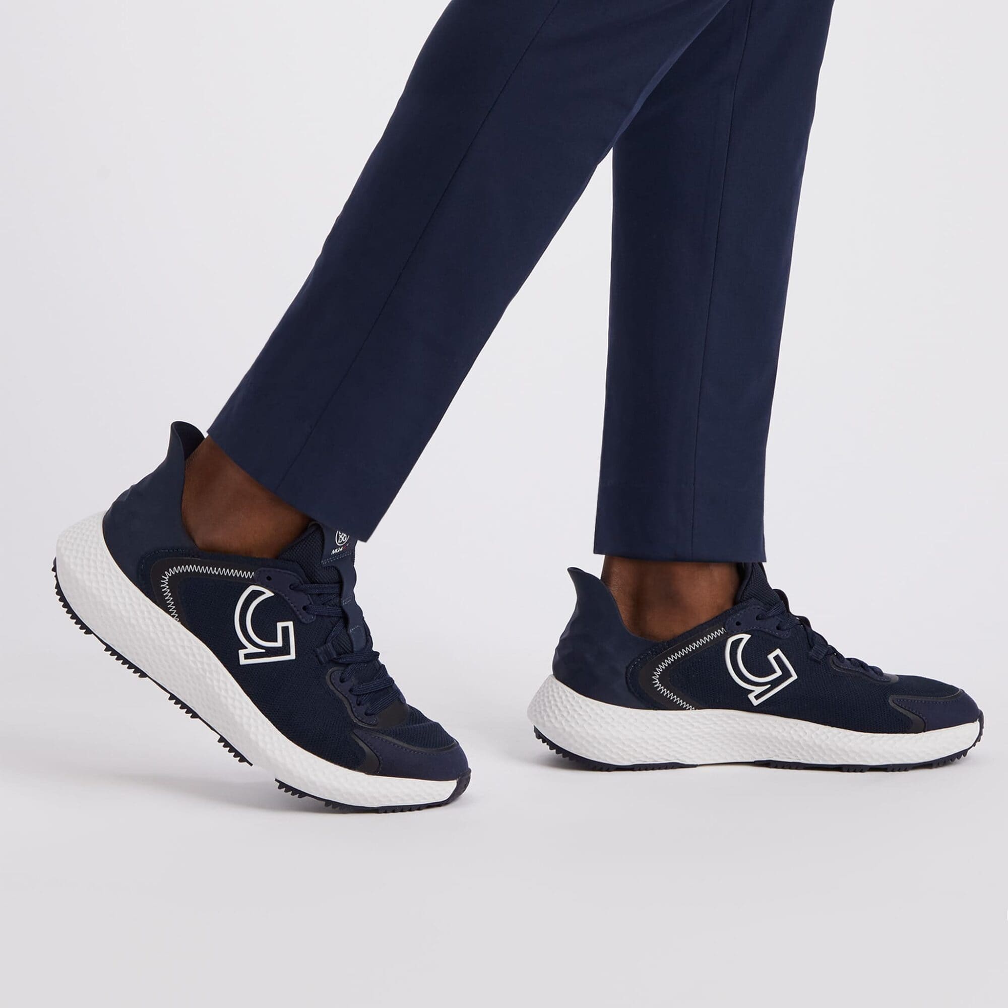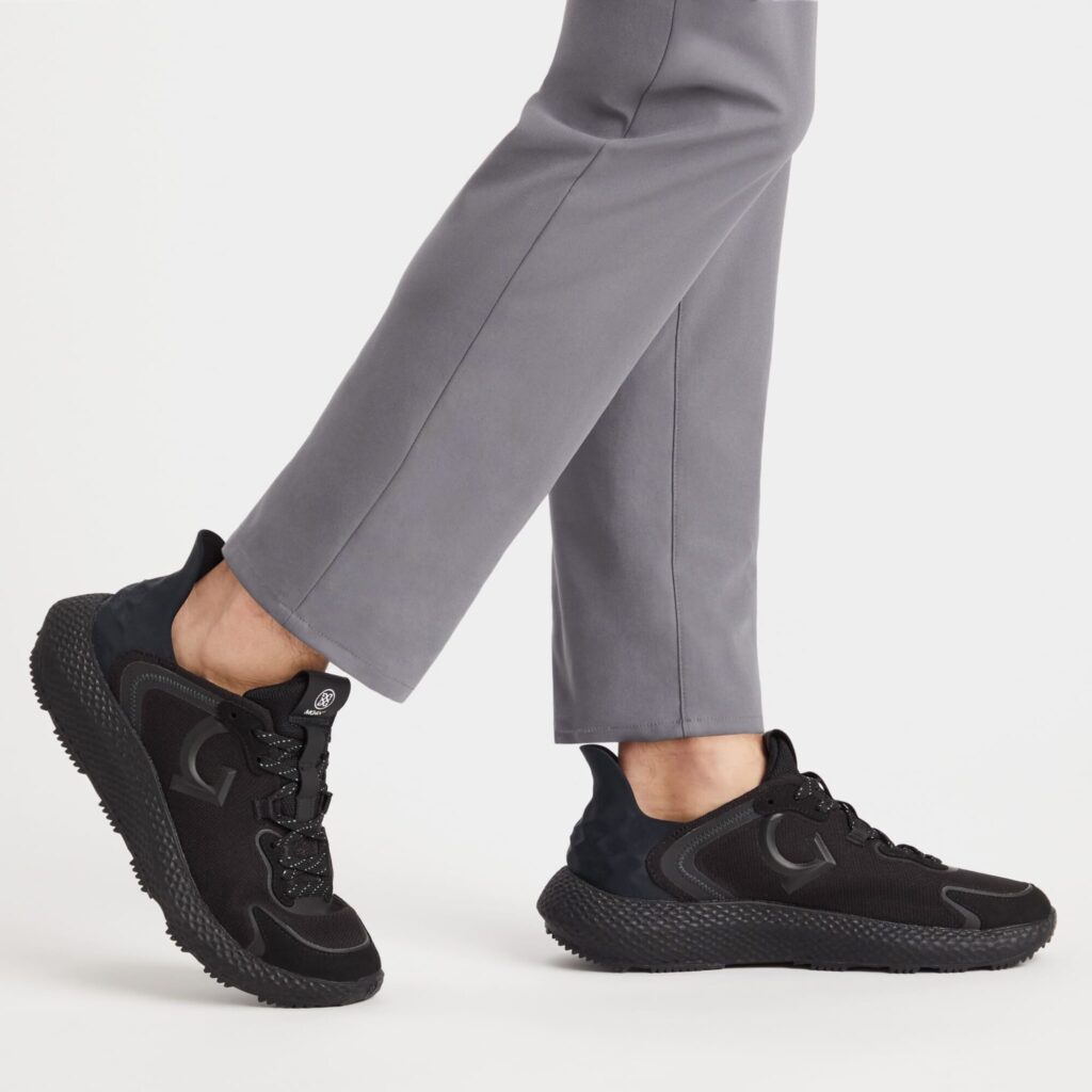the mg4x2 golf cross trainer is a multi-functional shoe that takes you from the street to the course with ease. featuring a one-piece engineered waterproof g/dry knit upper for unbeatable comfort, an auxetic lattice midsole for all-day support, a sawtooth traction pattern for grip, and finished with our staple triple-density foam cushion footbed for a massage with every step.