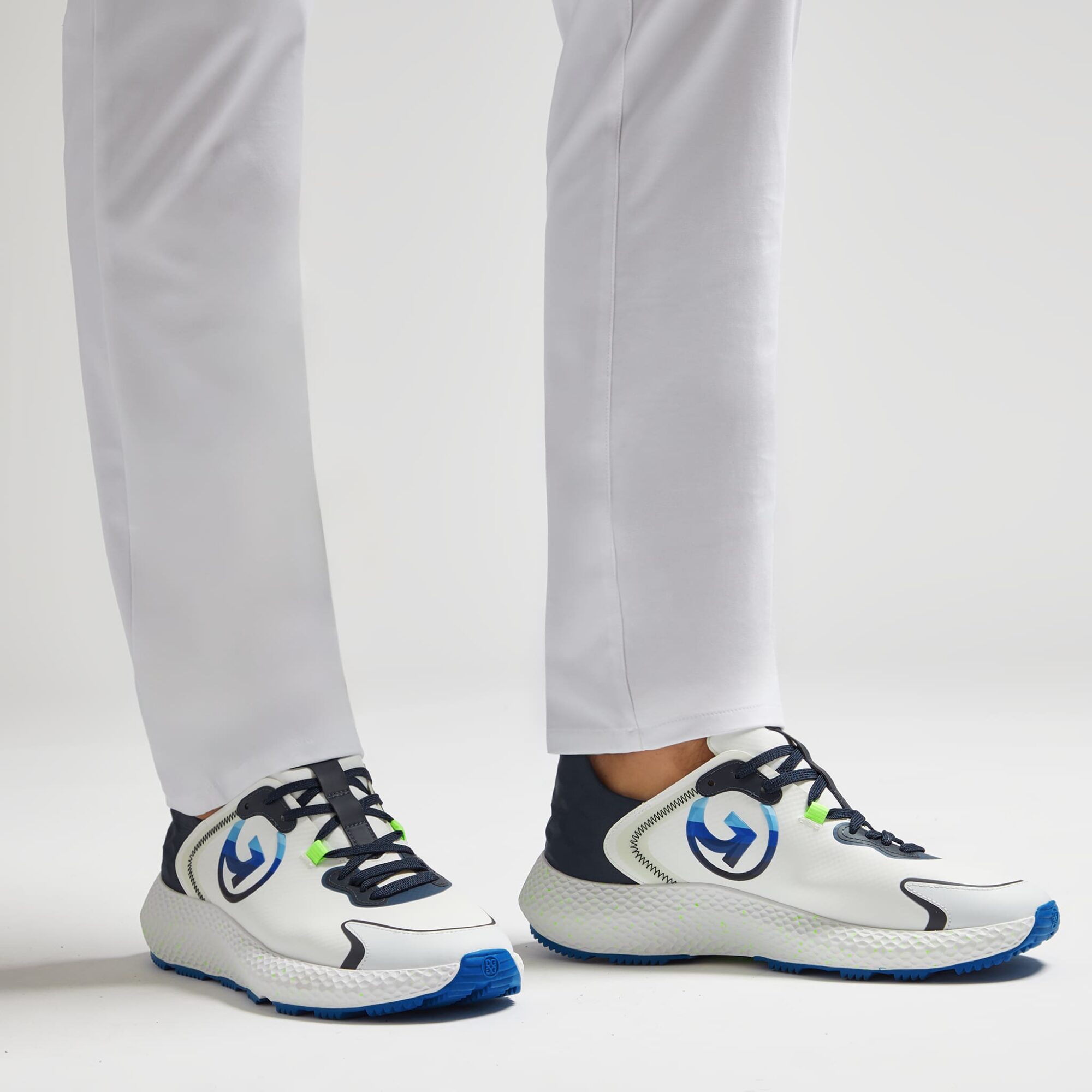 the mg4x2 hybrid golf cross trainer is a multi-functional shoe that takes you easily from the street to the course, and back again. featuring a premium performance t.p.u. outer for protection from the elements, it boasts an auxetic lattice midsole for all-day support, a sawtooth traction pattern for grip, and our staple triple-density foam cushion footbed for a massage with every step.