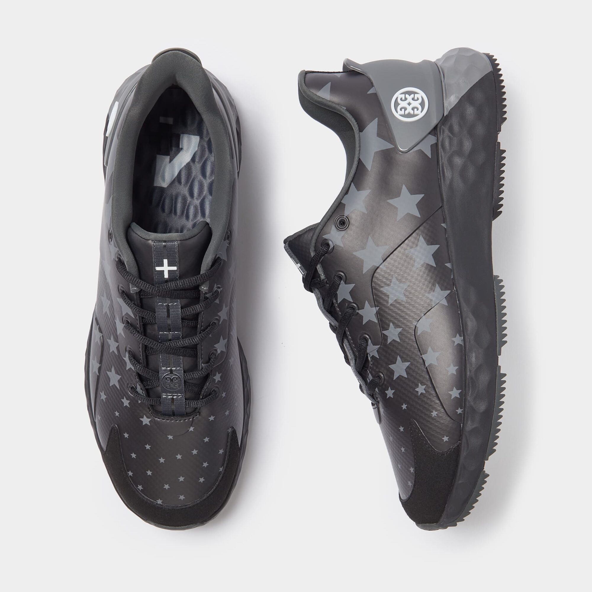 the mg4+ golf shoe is the perfect combination of lightweight comfort and technical performance. built upon the classic necessities of a golf shoe, but with a modern perspective, this style boasts a washable, triple density foam cushion footbed and auxetic lattice midsole for rebound. paired with a fully waterproof high abrasion resistant exterior and 3d molded external heel cup for additional support.