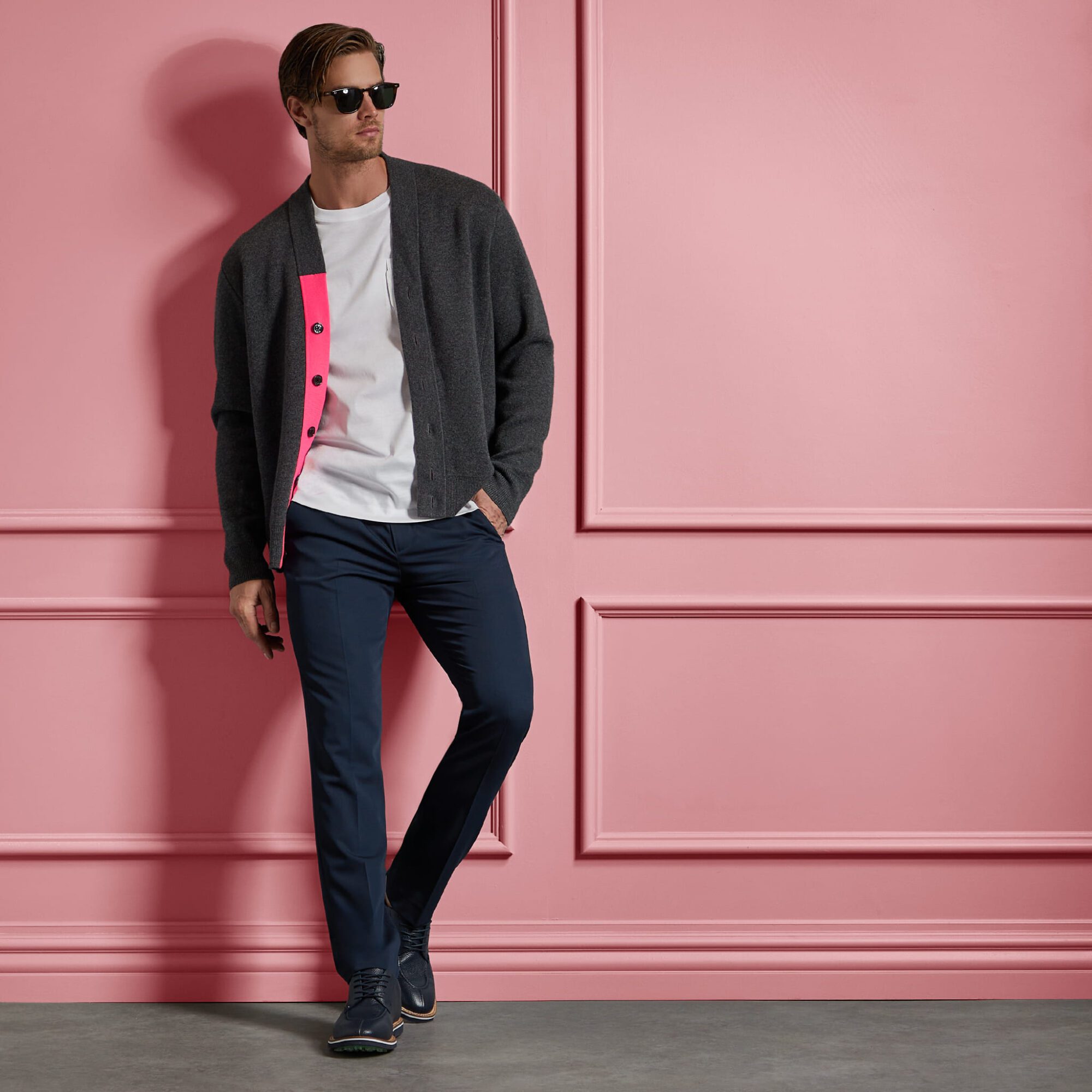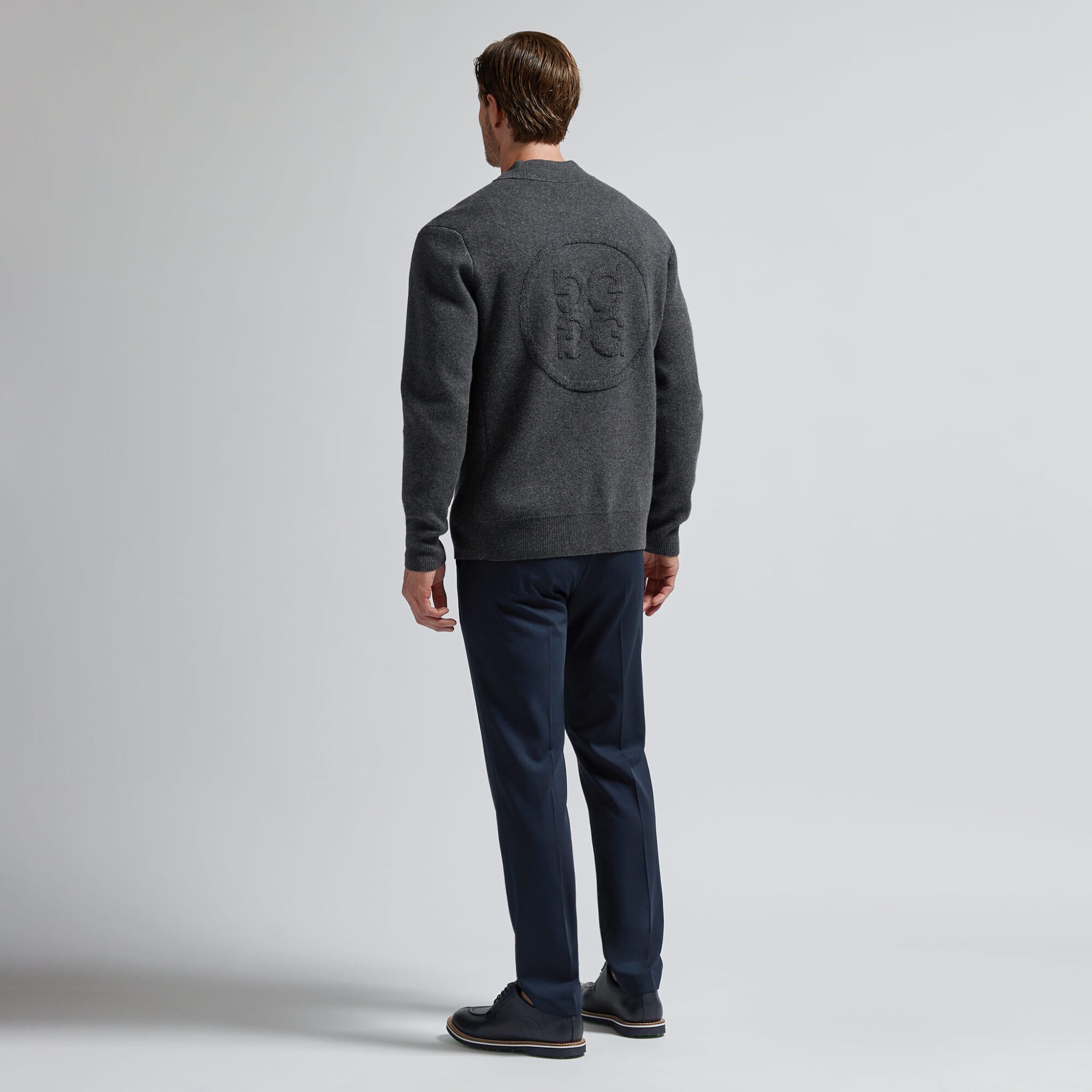 perfect for throwing on over a tee, this versatile cardigan will be your new essential to pack, just in case. made of a soft merino wool and cashmere blend with quick dry, odor inhibiting, and moisture wicking properties, it works great on the course as well. layer over a dress shirt with one of our tailored pants for a more modern, relaxed look at the office.