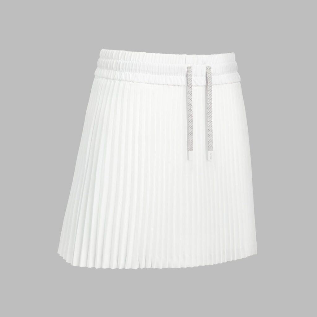 meet the skort you need on rotation. why? because it's versatile enough for the court, the course, and anything in between. designed with a high rise and drawcord waist, this premium style is crafted from pleated lightweight stretch woven for a classic a-line silhouette. its interior shorts provide extra security to keep you on top of your game at all times.
