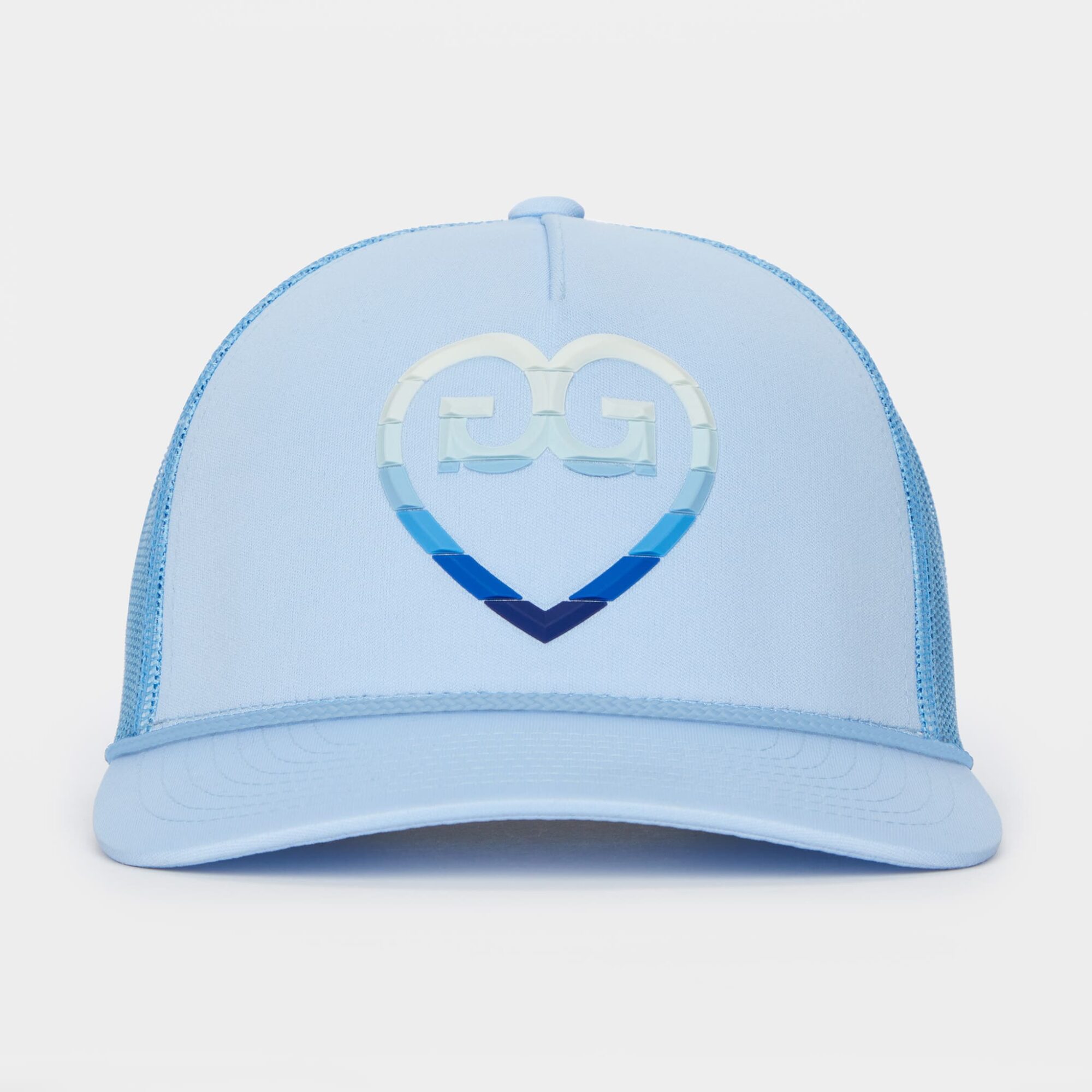 the striped heart g's interlock knit trucker hat features a built-in sweatband with a breathable interlock knit and mesh body, perfect for hot days on the green. plus, with an adjustable snapback closure, you'll have the best fit for all day play.
