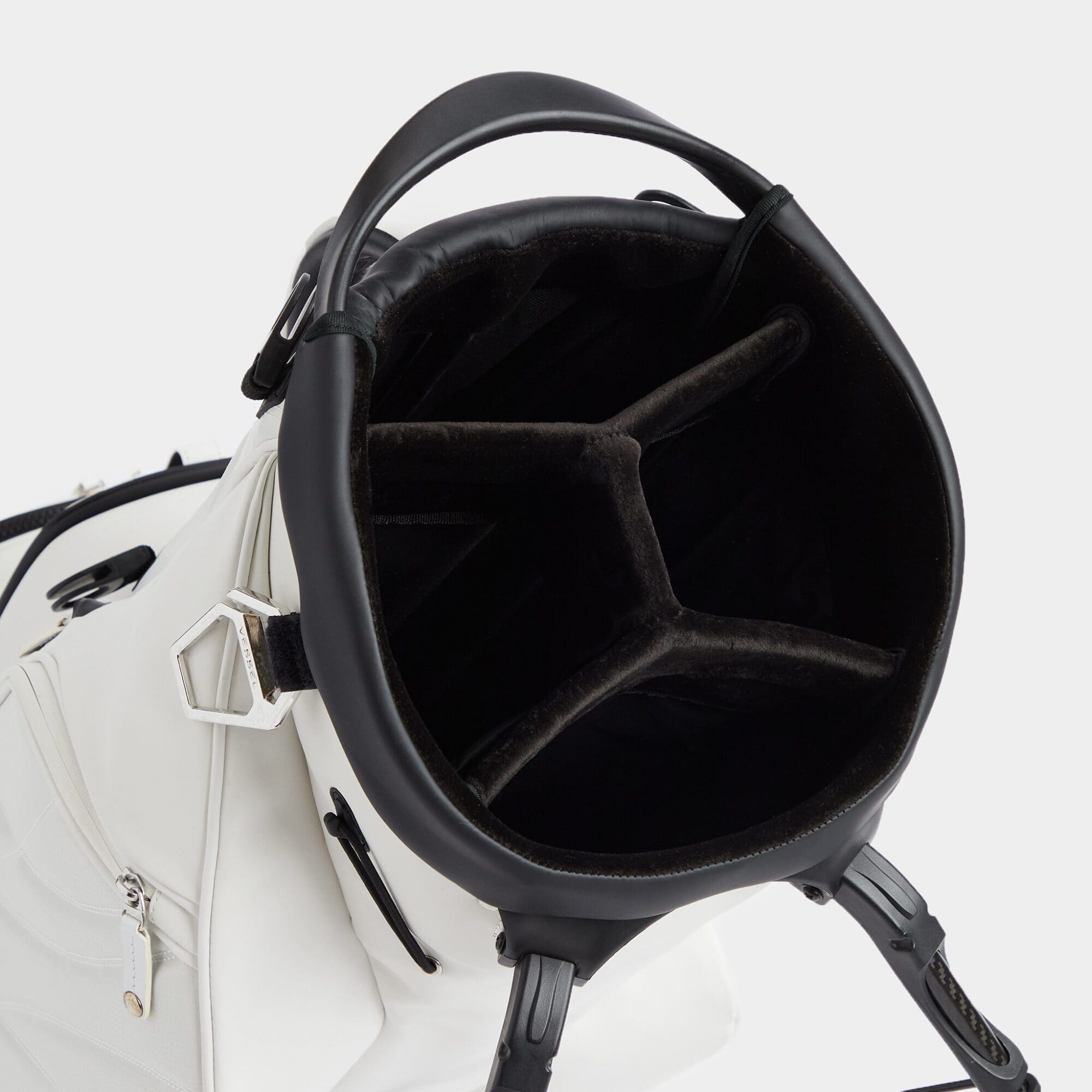 featuring a 4-way top with a handle, this 6 pocket design has water resistant zippers, a large apparel pocket, and a removable ball pocket for embroidery. it also boasts a magnetic expandable insulated water bottle pocket, vertical pull handle on the magnetic velour-lined rangefinder pocket, a towel ring/bottle opener, umbrella storage, a velour-lined water resistant valuables pocket, and an all-weather matching rain hood. comes with a convertible ergonomic dual strap, making this lightweight bag the ideal go-to for all of your needs.