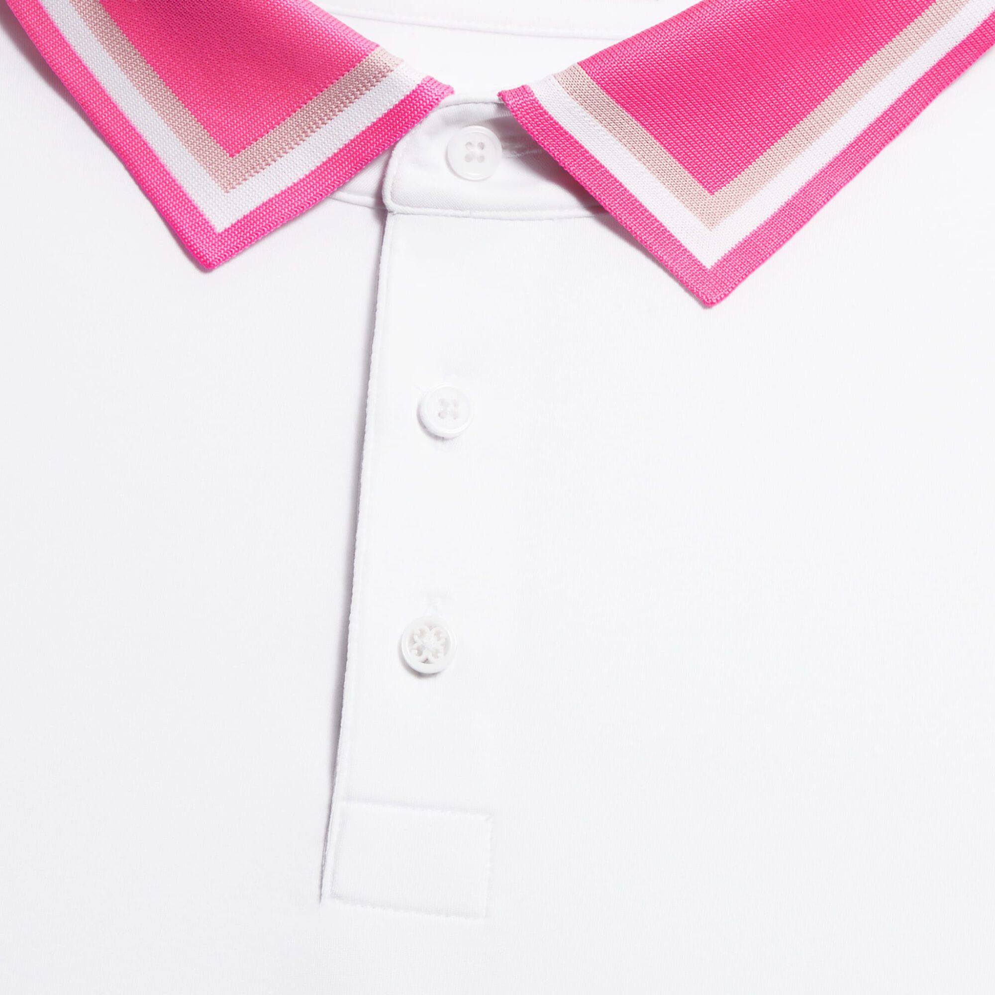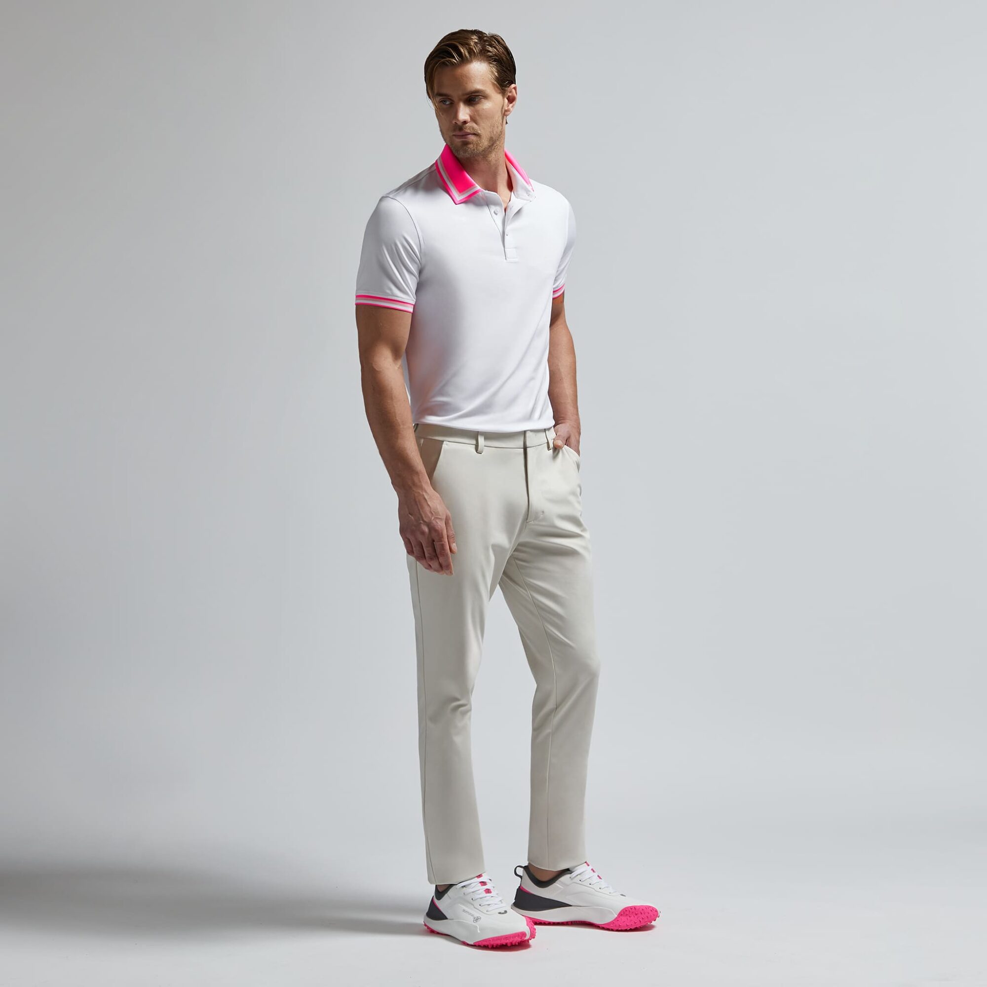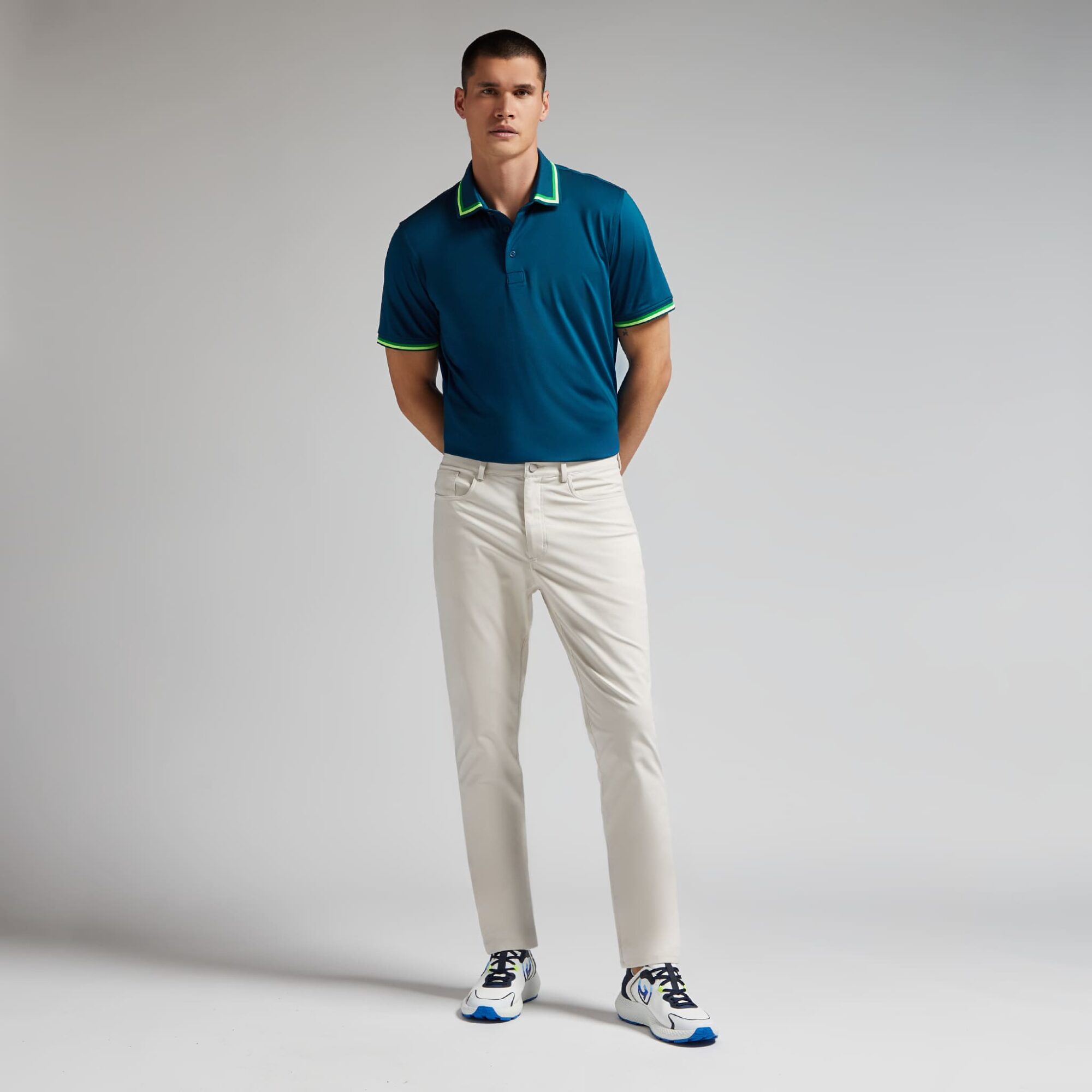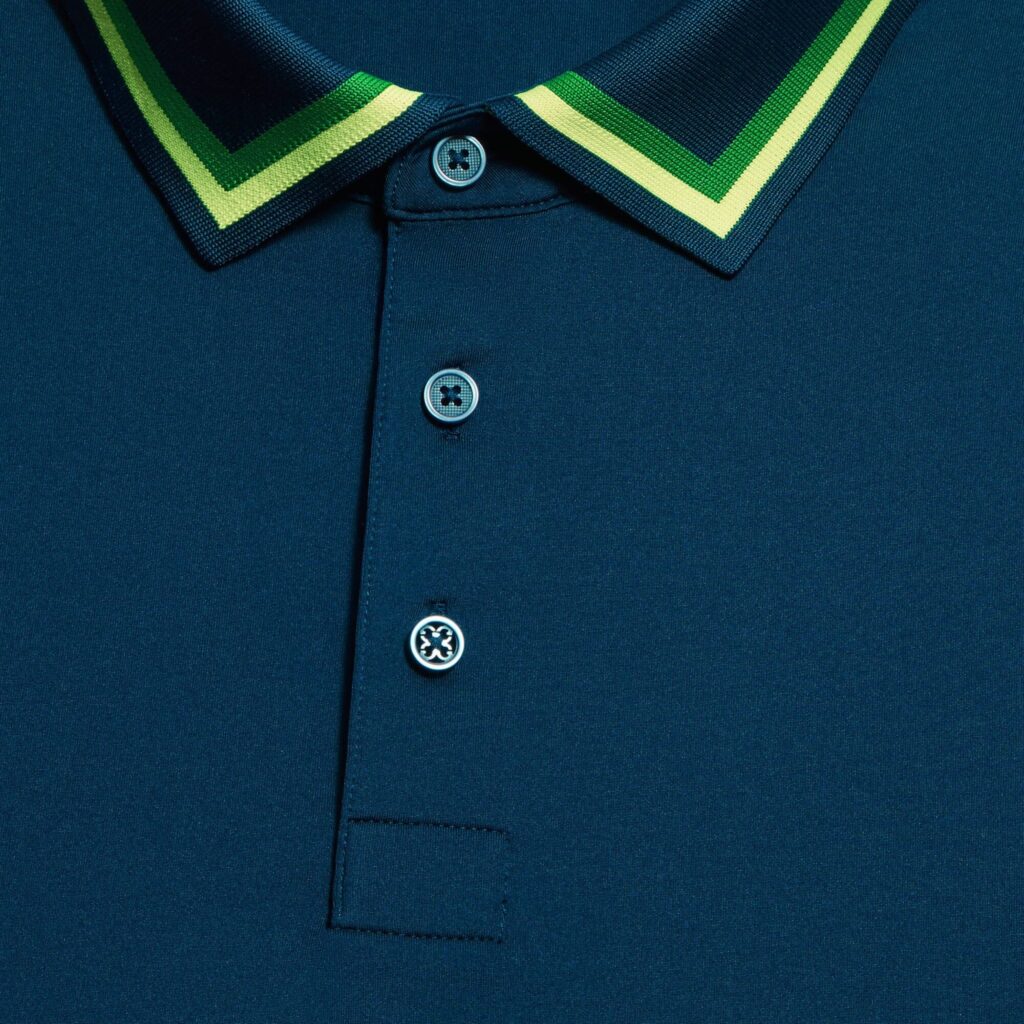 designed with contrasting stripe details along the collar and cuffs, this tech jersey polo is the ultimate everyday essential for days at the clubhouse, the course, and in between. made of smooth tech stretch jersey with moisture wicking and antimicrobial properties, plus unbeatable 4-way stretch, it's a must-have for any golfer's closet.