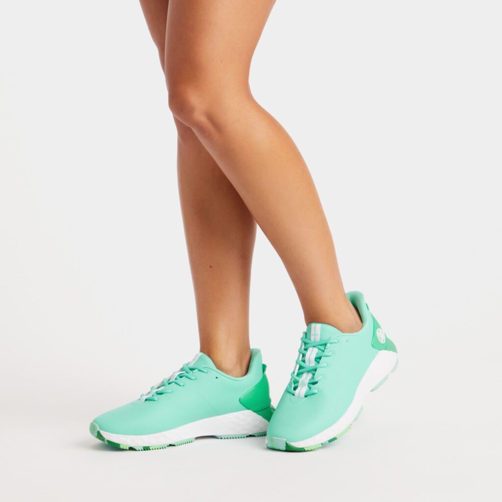 the mg4+ golf shoe is the perfect combination of lightweight comfort and technical performance. built upon the classic necessities of a golf shoe, but with a modern perspective, this style boasts a washable, triple density foam cushion footbed and auxetic lattice midsole for rebound, paired with a fully waterproof high abrasion resistant exterior and 3d molded external heel cup for additional support. color sardinia features made with a premium performance waterproof outer antimicrobial triple density foam cushion footbed with massaging nubs fully padded mesh interior lining for breathability & comfort 3d molded external heel cap for stability responsive auxetic lattice midsole & sidewall for all day comfort 2 piece rubber non-slip outsole with hybrid knurled & sawtooth traction pattern comes with an extra set of laces fit fits similar to the gallivanter, but with a wider toe box. if you are between sizes, we suggest ordering up. material 98% tpu/2% polyester