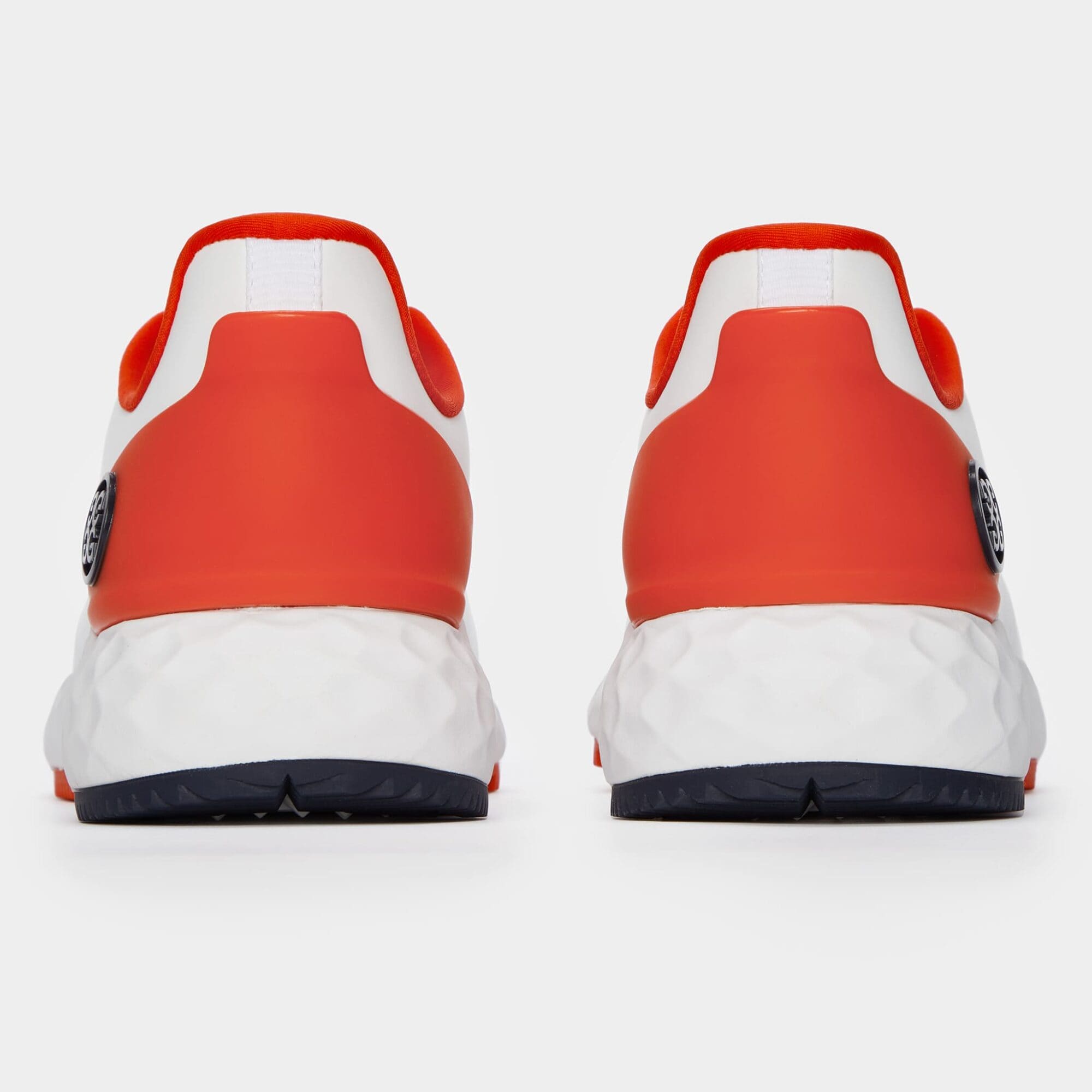 the mg4+ golf shoe is the perfect combination of lightweight comfort and technical performance. built upon the classic necessities of a golf shoe, but with a modern perspective, this style boasts a washable, triple density foam cushion footbed and auxetic lattice midsole for rebound, paired with a fully waterproof high abrasion resistant exterior and 3d molded external heel cup for additional support.