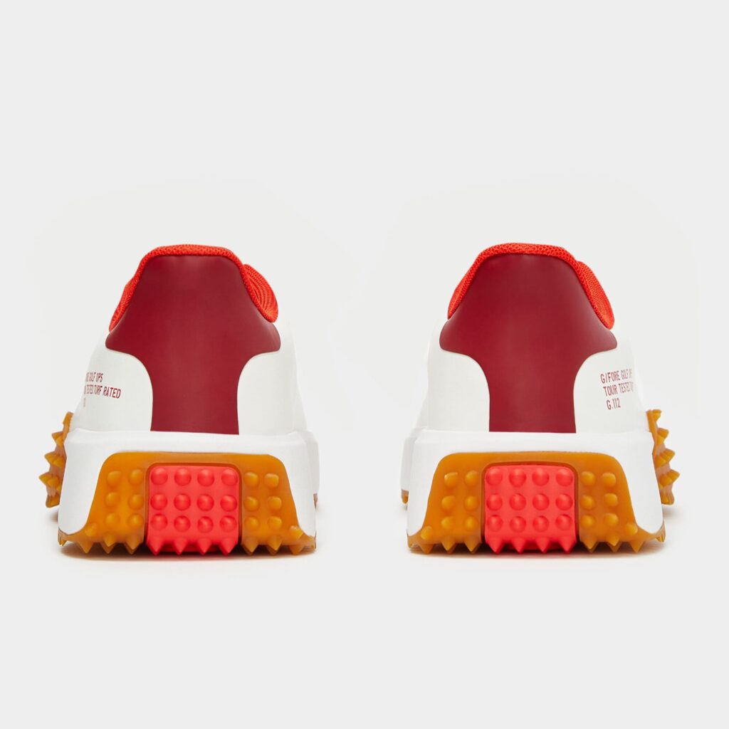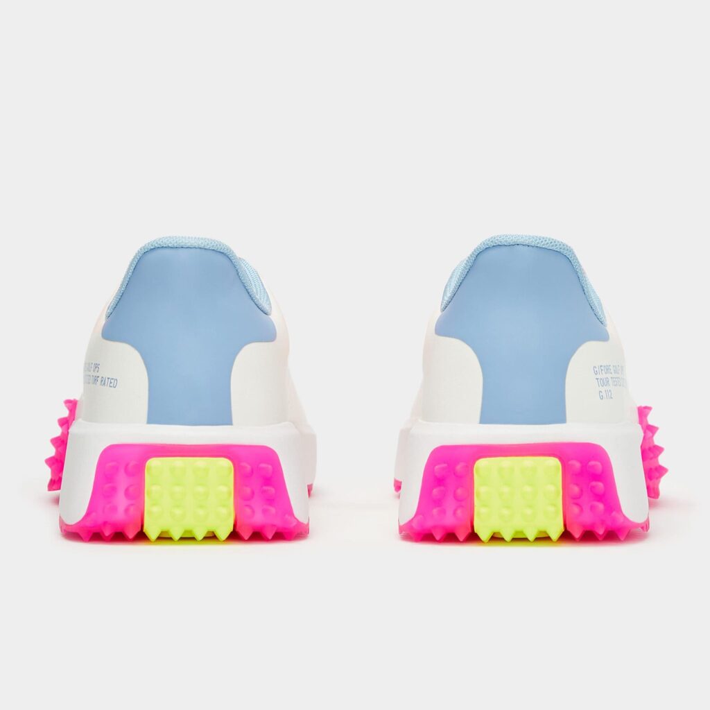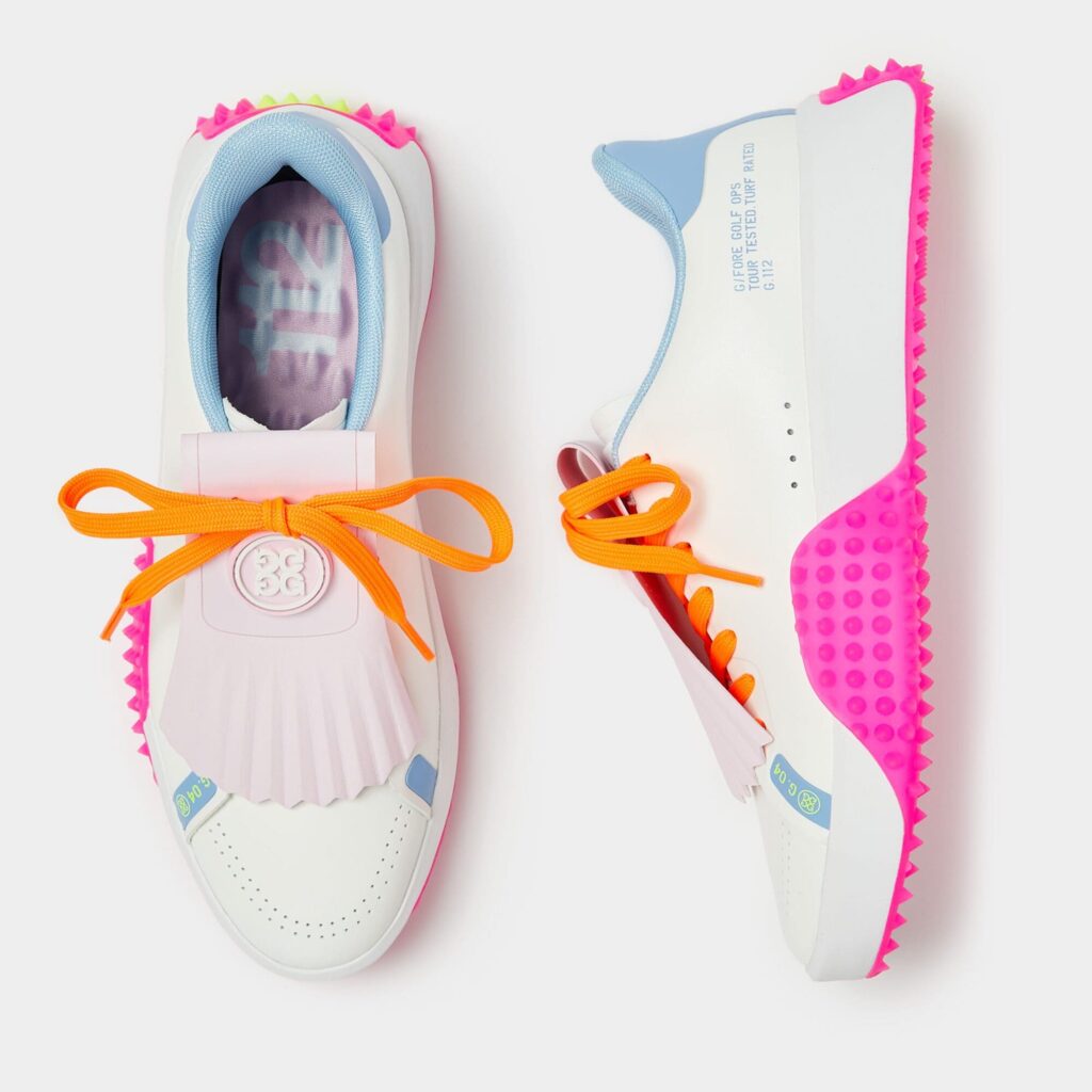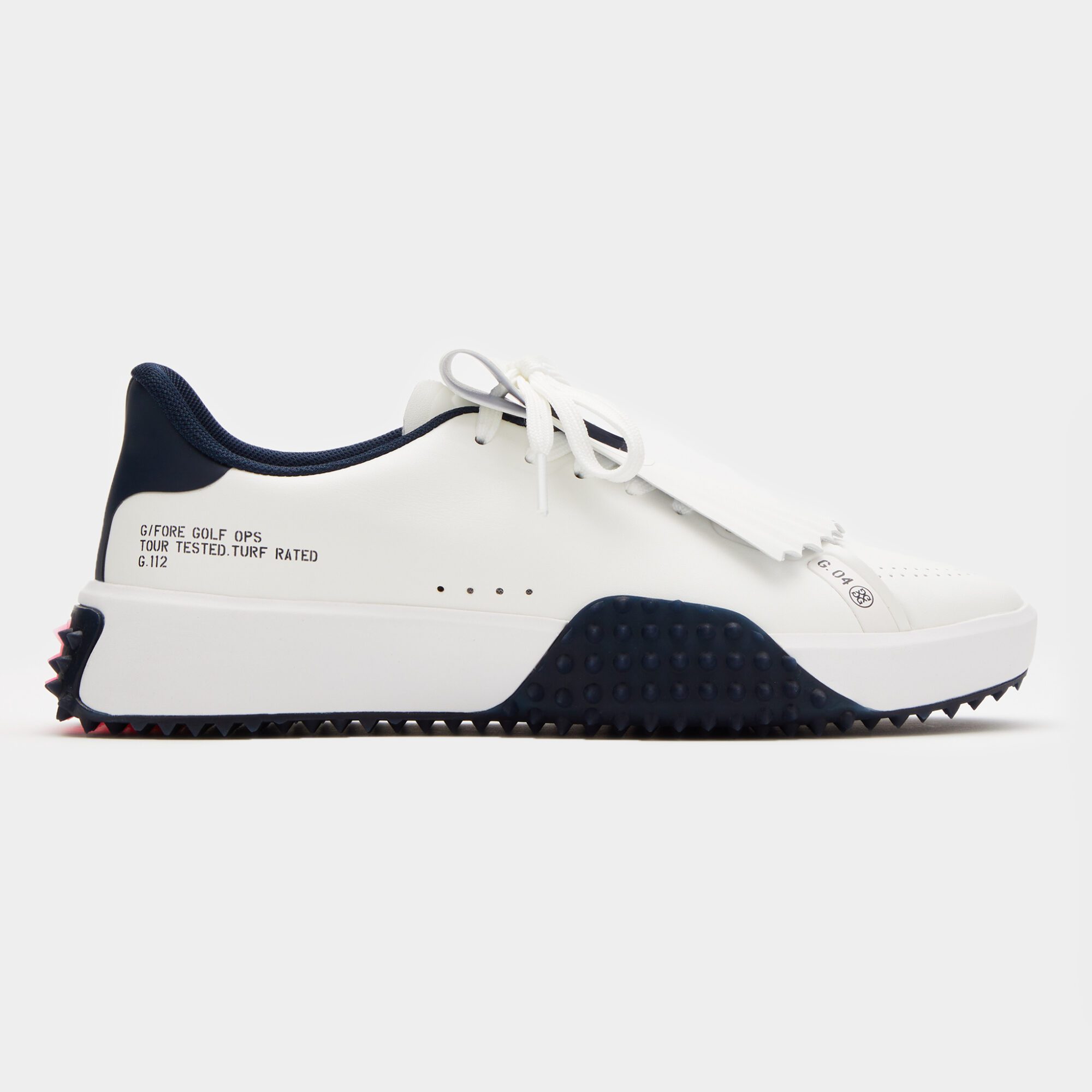 the modern g.112 golf shoe has a sleek silhouette and low drop design to enhance your connection to the ground. equipped for optimal grip with heel-to-toe turf traction, it's the go-to shoe for all day play with a comfortable eva midsole and mesh lining. wear this kiltie style with tailored pants and a classic polo for a look that works on the course or at the clubhouse.