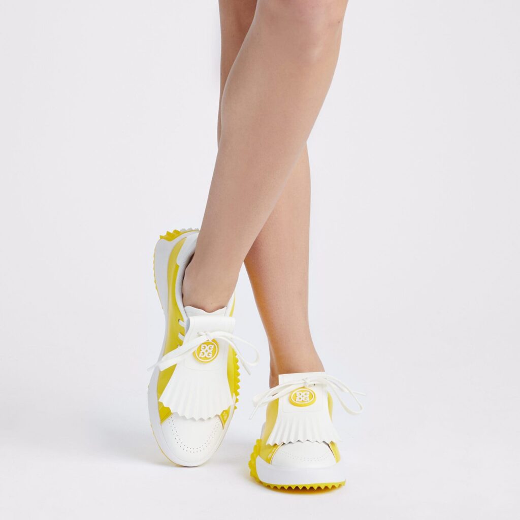the women's g.112 p.u. leather kiltie golf shoe supports a premium performance with an athletic style and cutting edge innovation. equipped for optimal traction and stability with a low drop and superior arch support. plus, removable kiltie accents for versatility. it's the go-to shoe for all day play on the course.