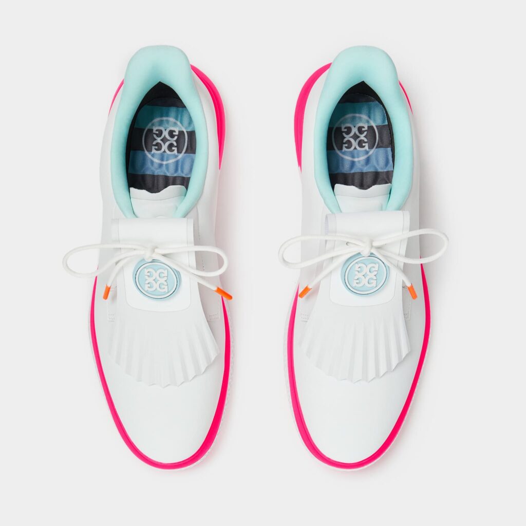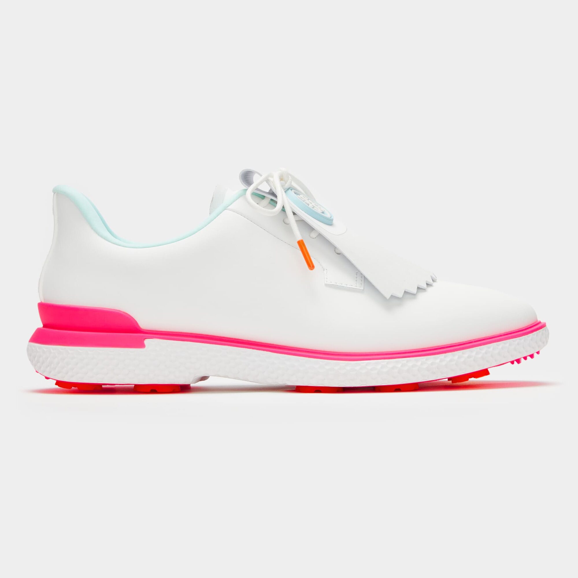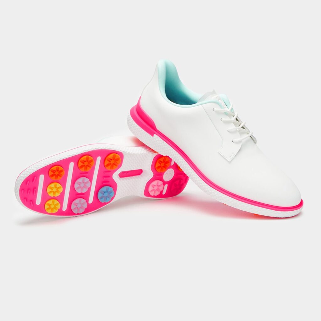 a combination of the mg4+'s modern performance details with the gallivanter's classic silhouette, the gallivan2r is a recent addition to our vast selection of innovative footwear. equipped with the unique g/pod traction system, an auxetic lattice midsole, heel counter security, cushioned interior, and performance textile lining, its ultra lightweight and comfortable design ensures fully locked-in stability with every swing. the waterproof t.p.u. upper won't let the weather stop you either.