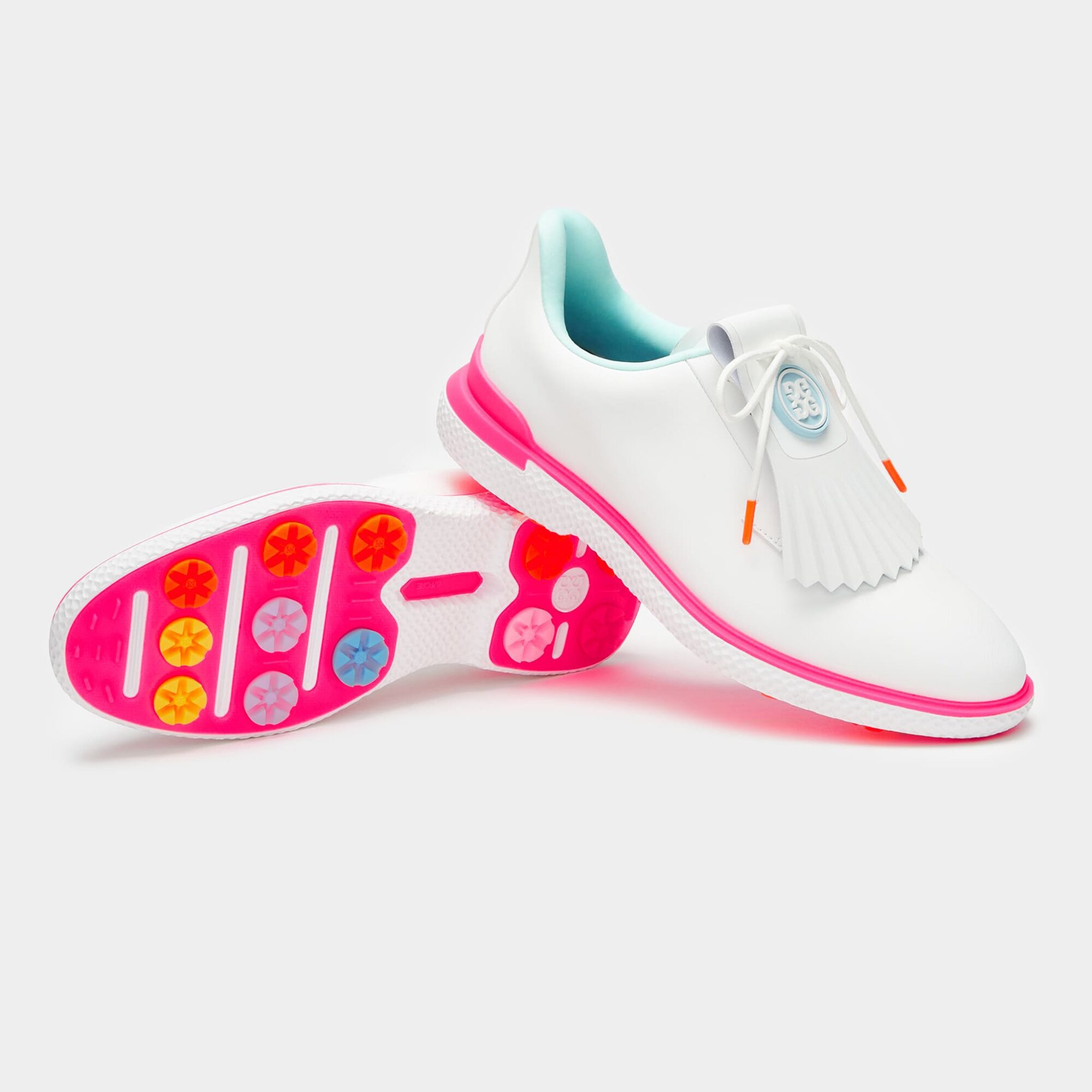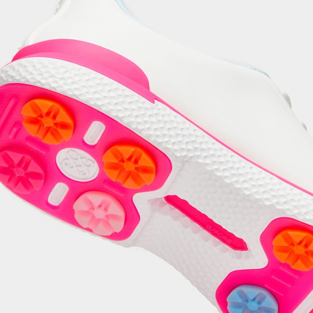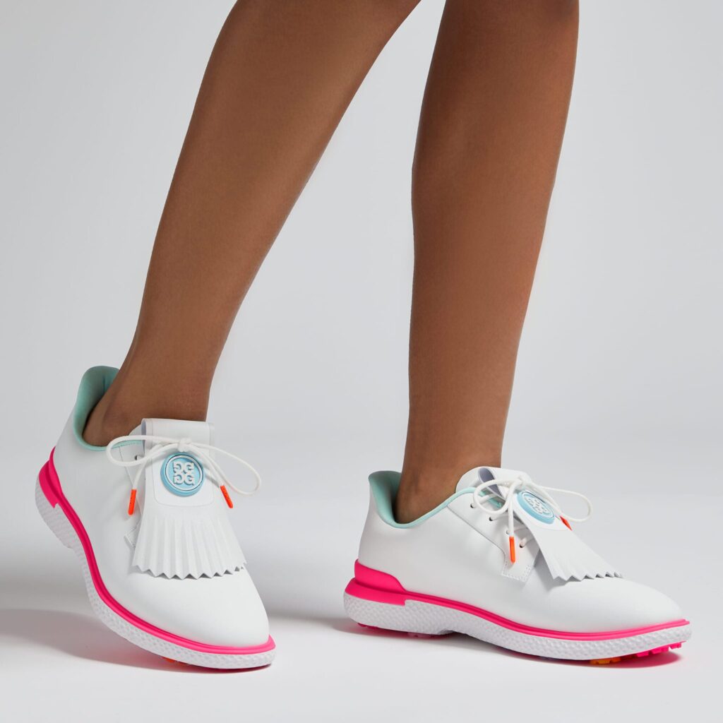 a combination of the mg4+'s modern performance details with the gallivanter's classic silhouette, the gallivan2r is a recent addition to our vast selection of innovative footwear. equipped with the unique g/pod traction system, an auxetic lattice midsole, heel counter security, cushioned interior, and performance textile lining, its ultra lightweight and comfortable design ensures fully locked-in stability with every swing. the waterproof t.p.u. upper won't let the weather stop you either.