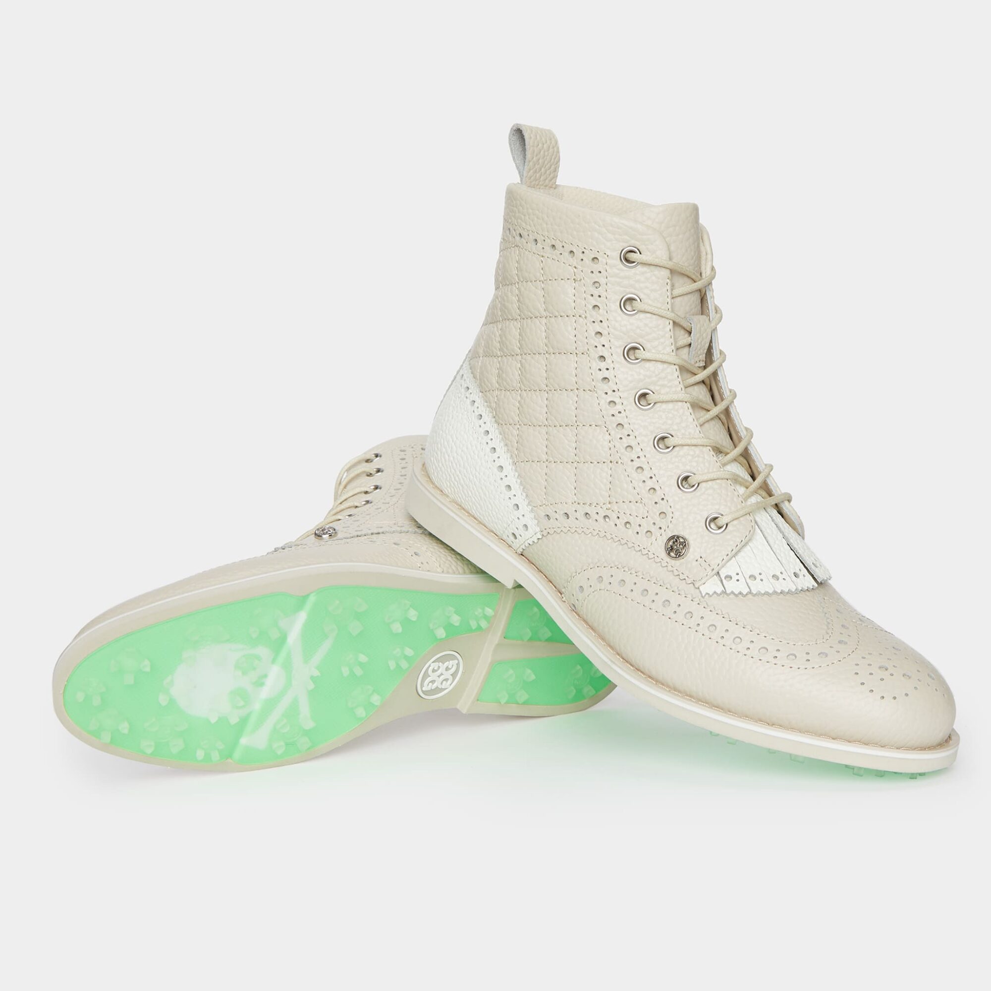 as stylish as it is comfortable, the gallivanter golf boot combines an athletic fit with premium waterproof leather. the gallivanter boasts an ultra lightweight sole coupled with a bespoke cleat design for optimal on-course traction. this shoe sports a washable and antimicrobial, triple density foam cushion footbed for superior comfort along with comfort system technology which allows airflow to feet and provides the ultimate massage for your soles.