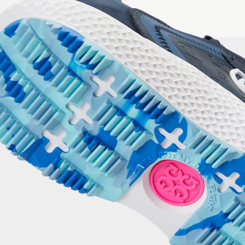 the women's mg4x2 debossed t.p.u. quarter g hybrid golf cross trainer is a multi-functional shoe that takes you easily from the street to the course. featuring a one-piece engineered waterproof upper for unbeatable comfort, it boasts an auxetic lattice midsole for all-day support, a sawtooth traction pattern for grip, and our staple triple-density foam cushion footbed for a massage with every step.