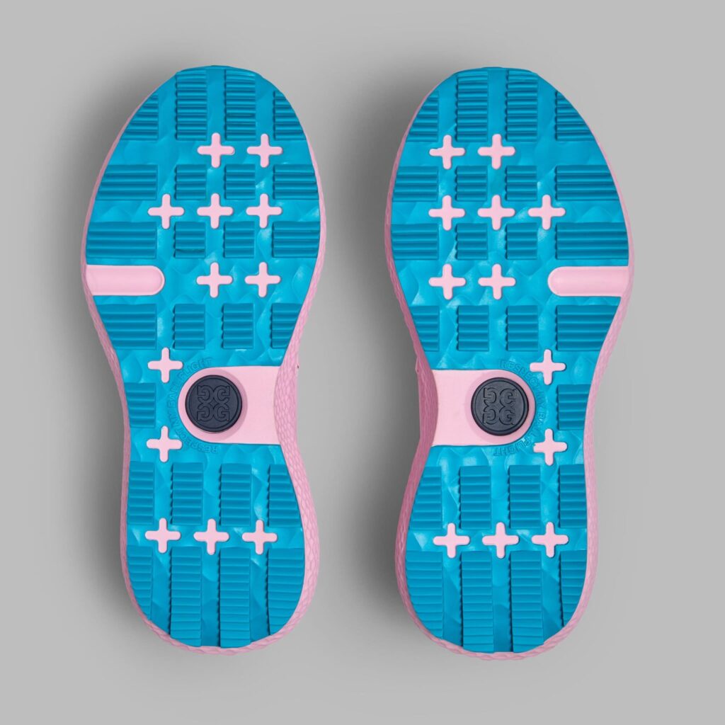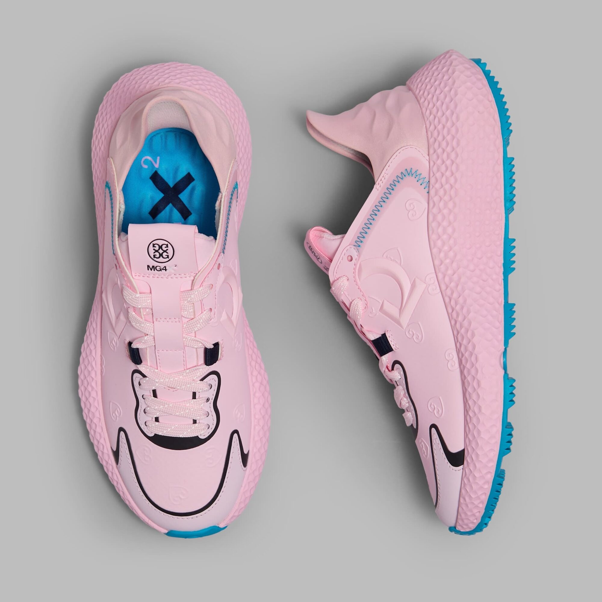 the mg4x2 hybrid golf cross trainer is a multi-functional shoe that takes you easily from the street to the course, and back again. featuring a water-resistant material for protection from the elements, it boasts an auxetic lattice midsole for all day support, a sawtooth traction pattern for grip, and our staple triple-density foam cushion footbed for a massage with every step. the embossed heart g's on the upper add a playful touch to this shoe, making it the perfect finishing touch to any on- or off-course outfit.