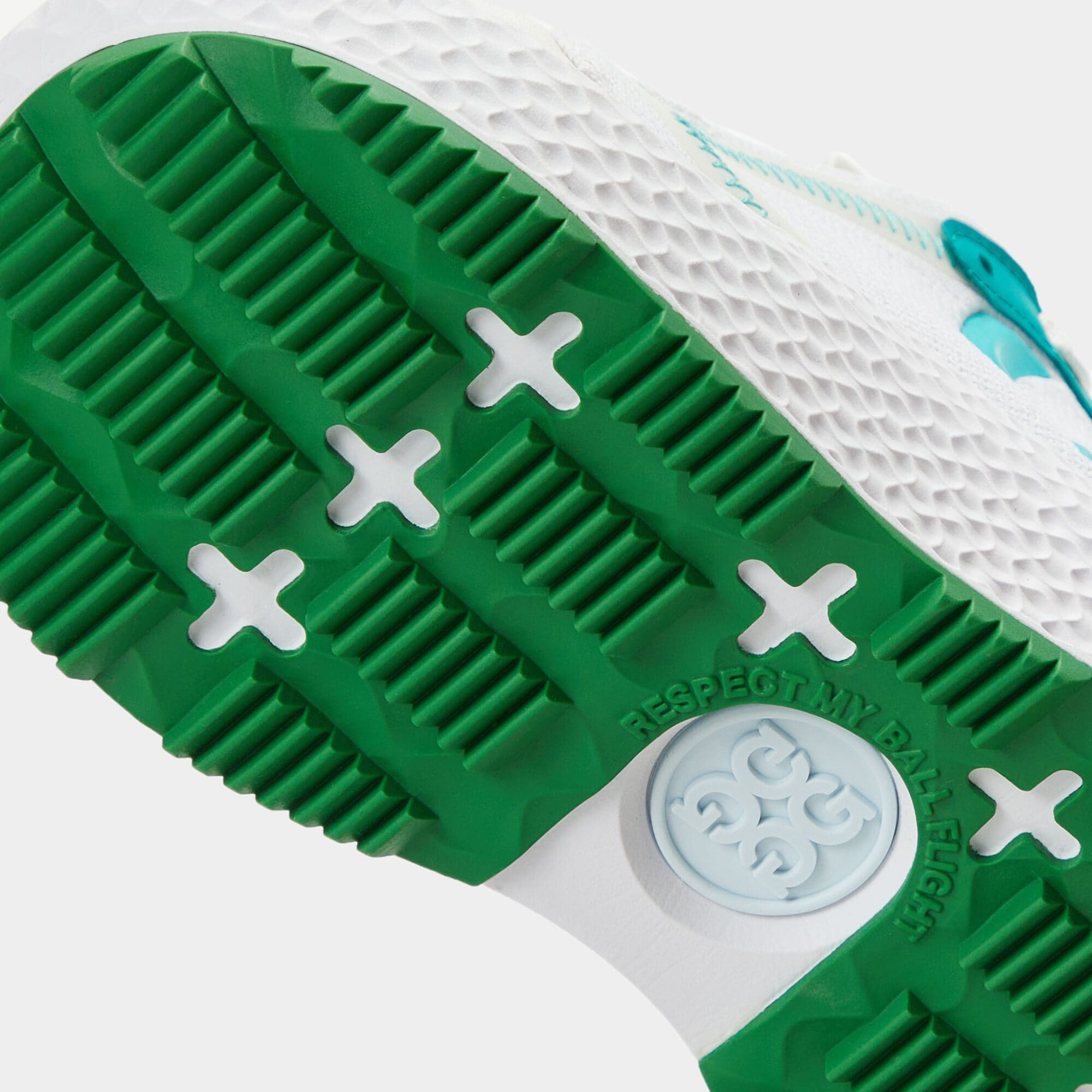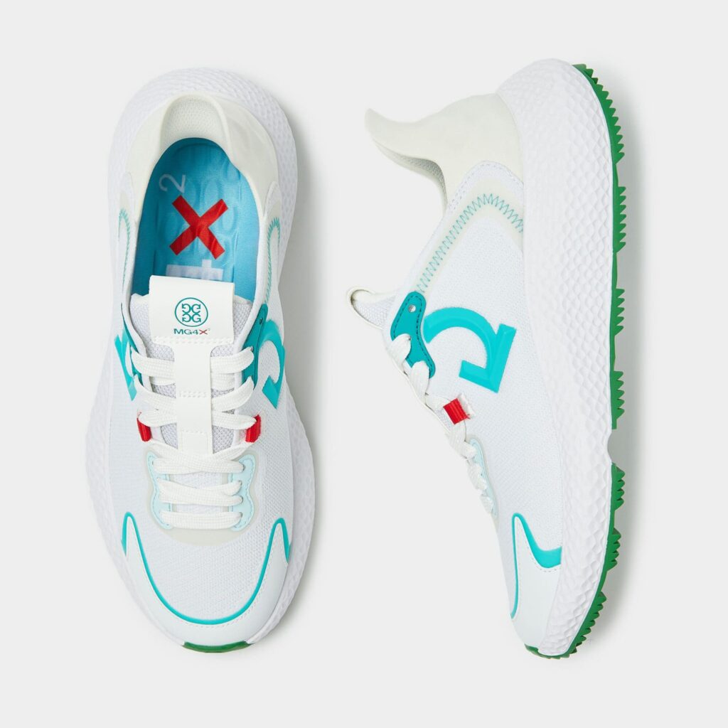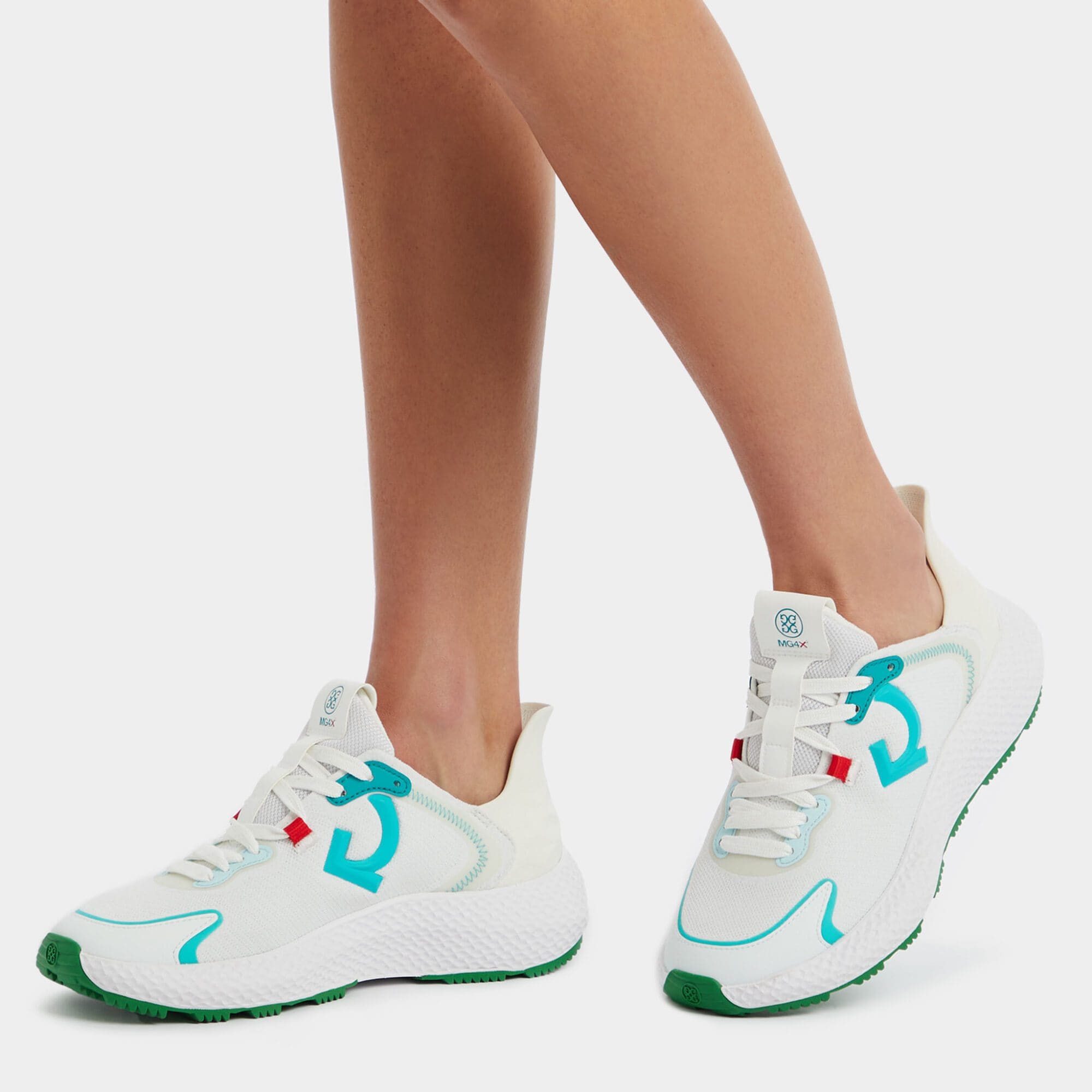 the women's mg4x2 knit quarter g hybrid golf cross trainer is a multi-functional shoe that takes you easily from the street to the course. featuring a one-piece engineered water repellent g/dry knit upper for unbeatable comfort, it boasts an auxetic lattice midsole for all-day support, a sawtooth traction pattern for grip, and our staple triple-density foam cushion footbed for a massage with every step.
