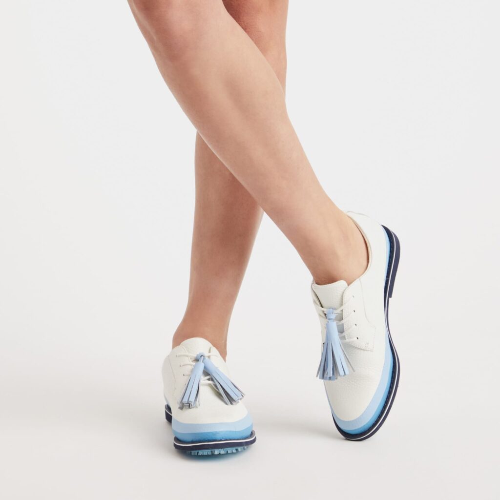 as chic as it is comfortable, the tassel tuxedo gallivanter golf shoe is designed in signature g/fore colourways with premium waterproof leather so no break in is needed! this style features a removable tassel for those days when you want to add personality to your fit. custom designed by g/fore’s team of footwear experts, the tassel tuxedo features an ultra lightweight sole coupled with a colourful bespoke cleat design for optimal on-course traction. this shoe wouldn’t be complete without a washable and antimicrobial, triple density foam cushion footbed for superior comfort and airflow to feet all while providing the ultimate massage for your soles.